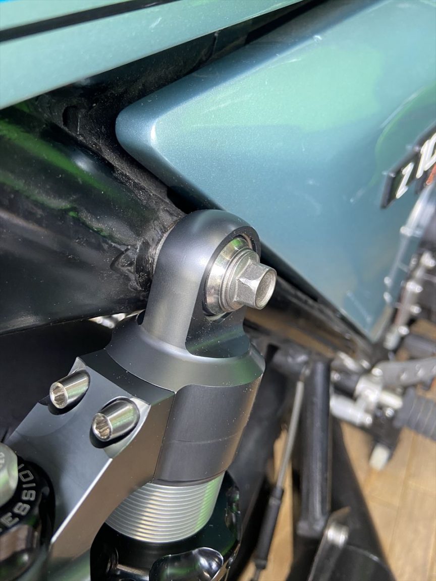 エンドアイがピロボールなので、大きなワッシャーもいらず、シンプルな取り付けです。
