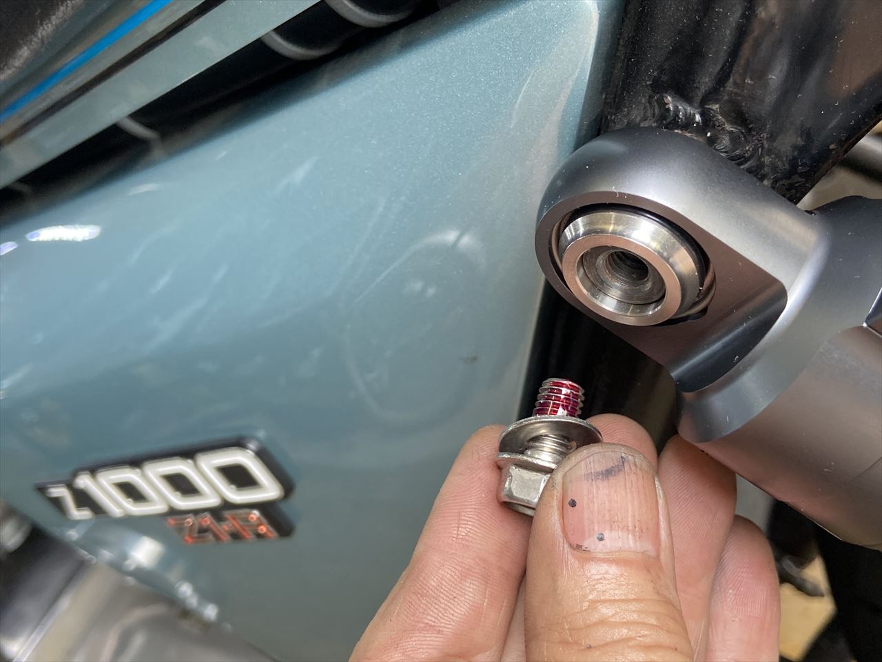 反対側もスペーサーを入れてネジロックを入れて締め付けます。