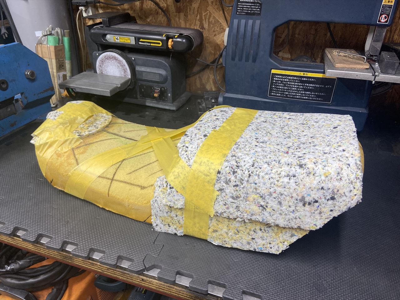 座面を大方削り、前後にスポンジを貼り付けます。