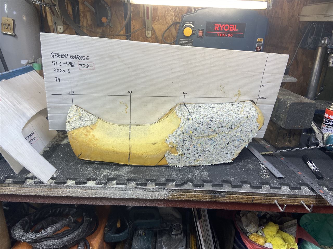 加工前はこちら。今回のシート、お持ち込み時はこんな形状で、既にS1仕様に加工されたものでした。