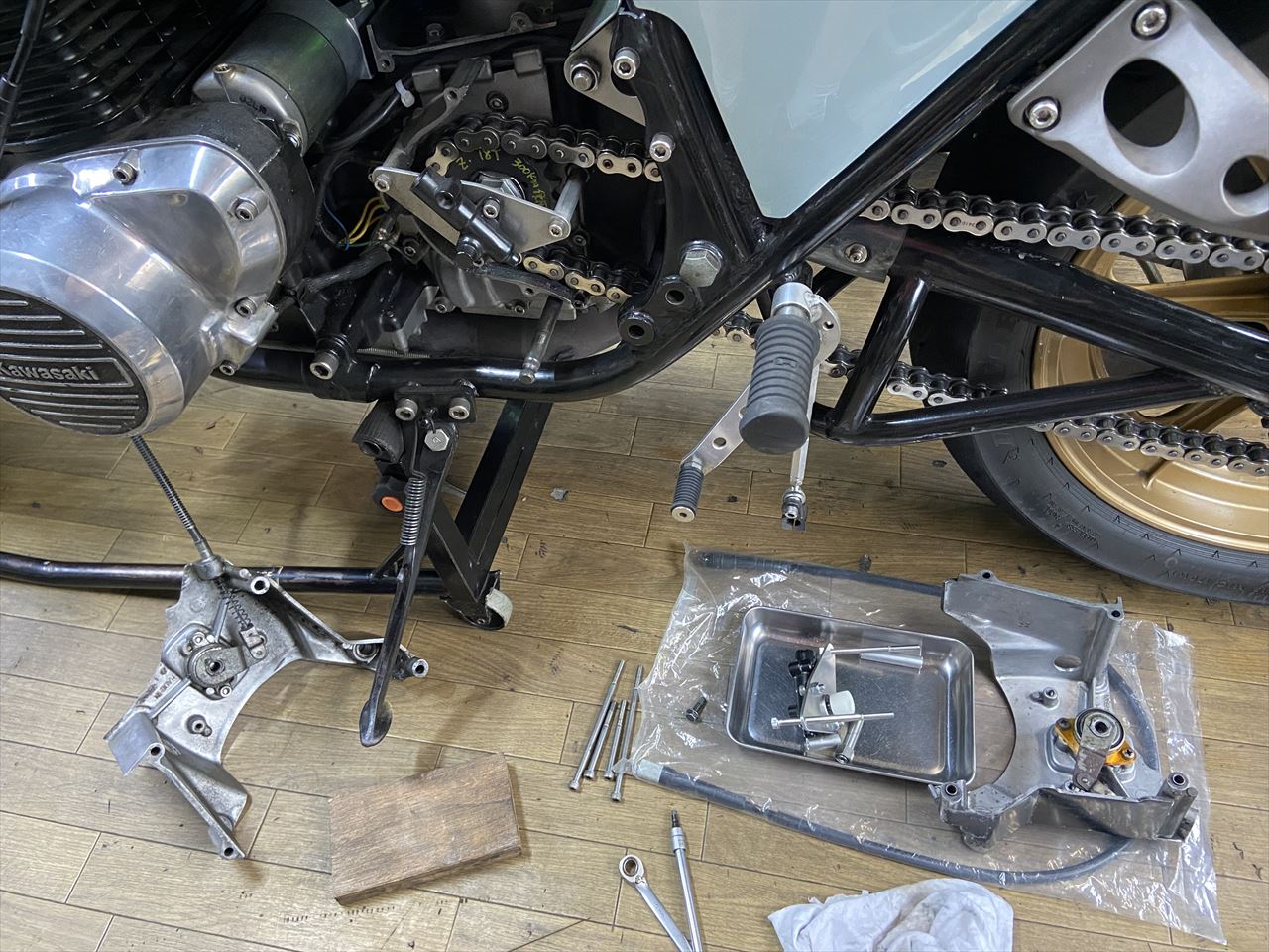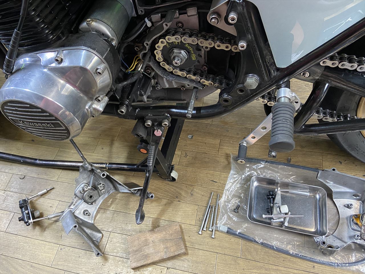 Z1Rの今の状態です。今回のキットも基本的同じ構成です。スプロケカバーはこのようにカットしなくても装着できますが、カバー裏側の防振パネルとスポンジは取り外します。