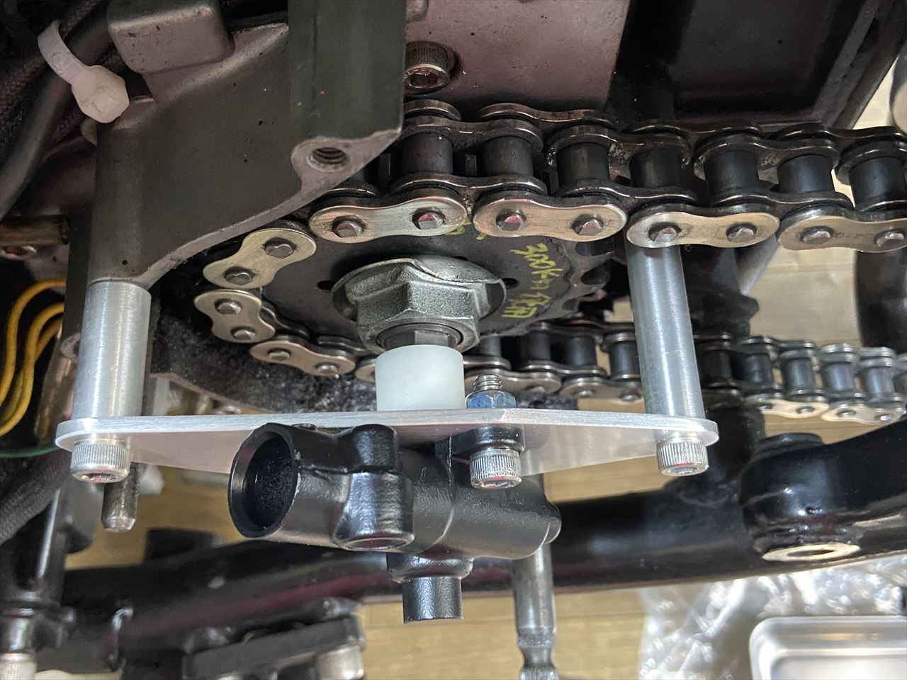 ケーブルの取り付けイメージはこんな感じ。実際にはスプロケカバーを付けた後差し込みます。