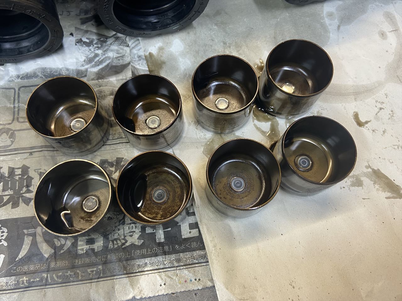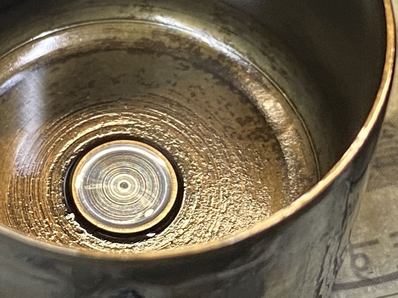 ヘッドを分解します。リフターを外して裏側を見ると、ステムエンドに当たる部分の摩耗が進んでいます。