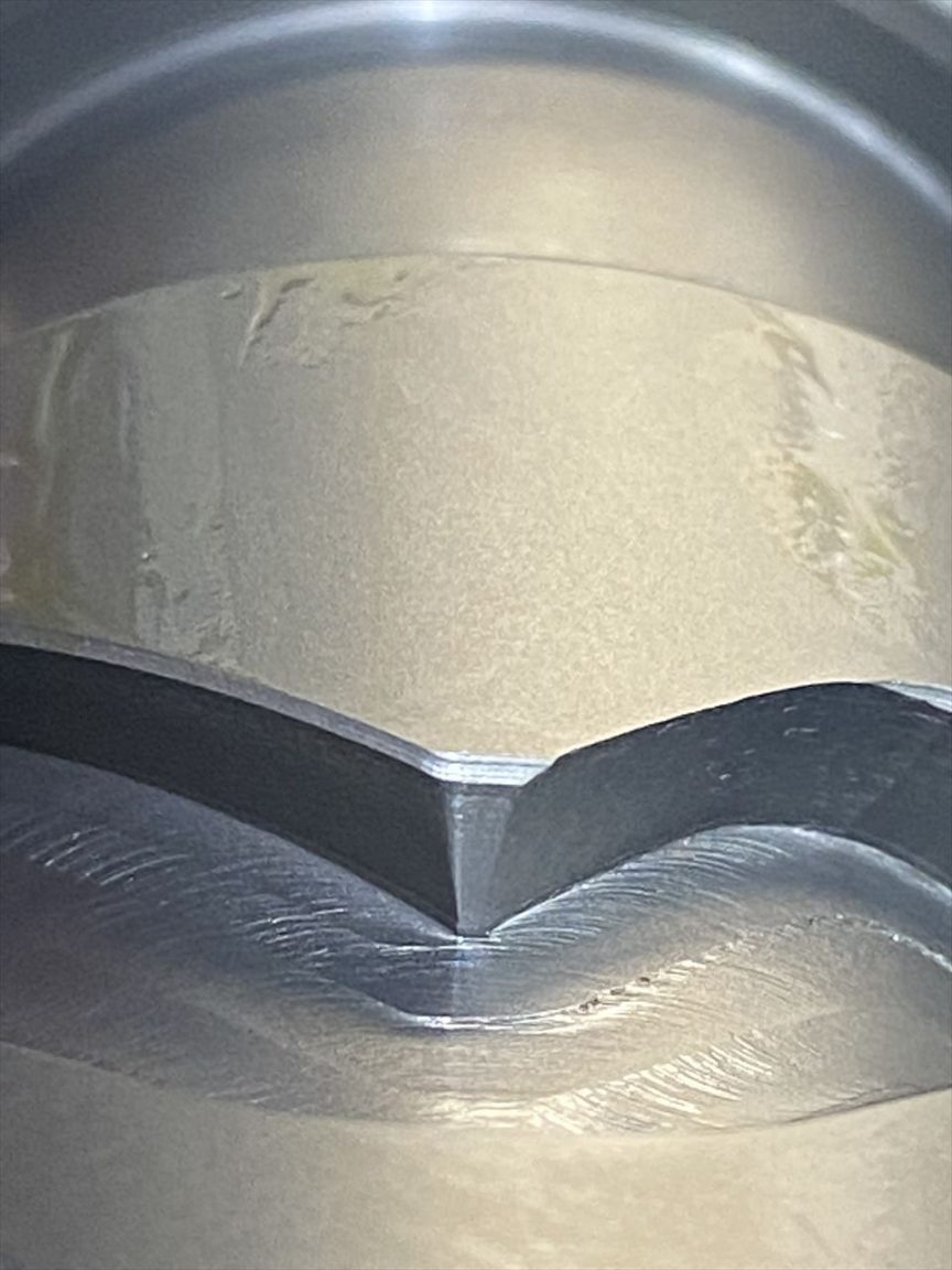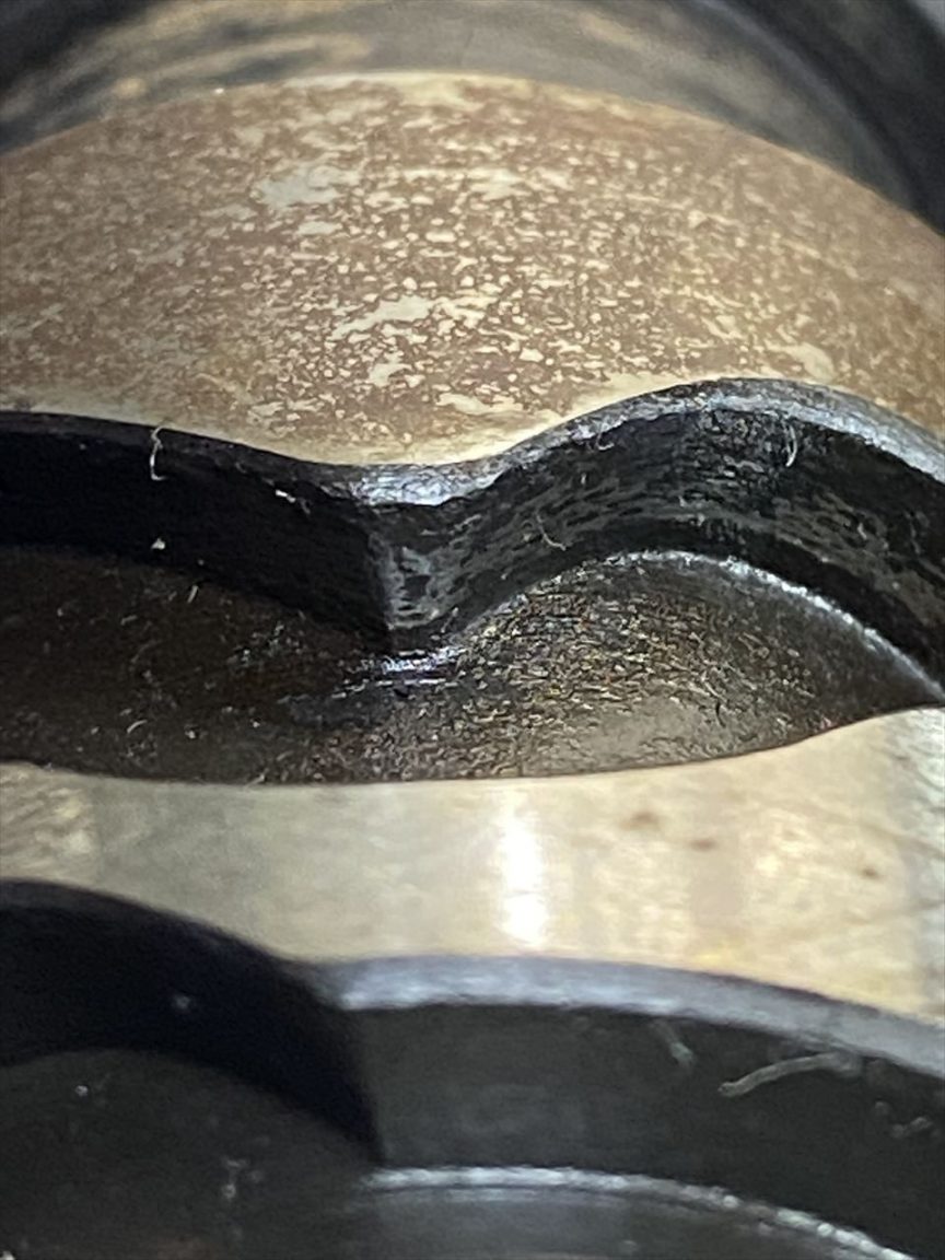 カム溝の山は、1か所摩耗が進んで丸くなっています。