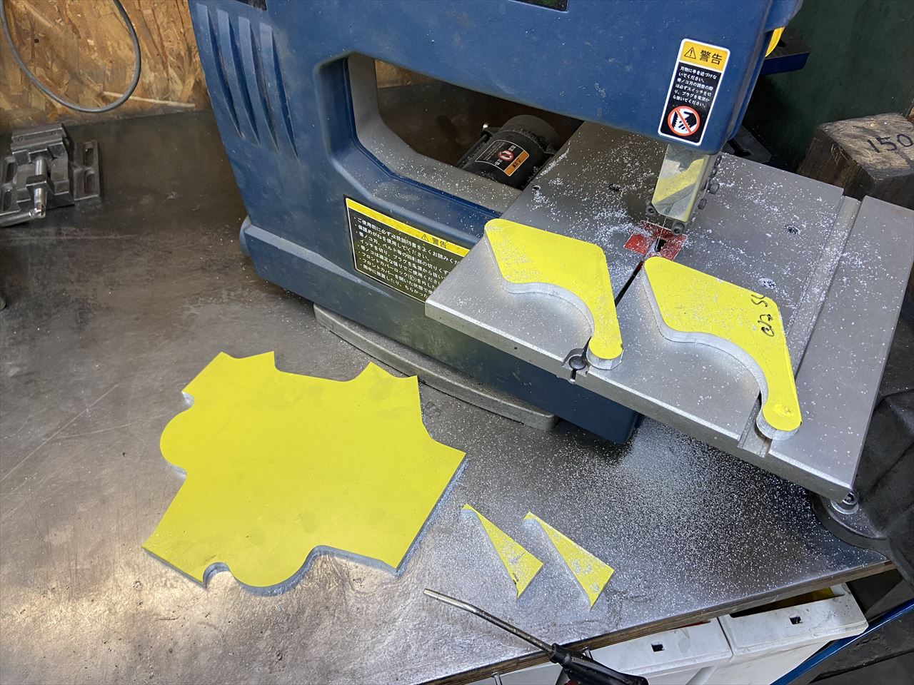 テンプレートから移した形にバンドソーで切り出します。