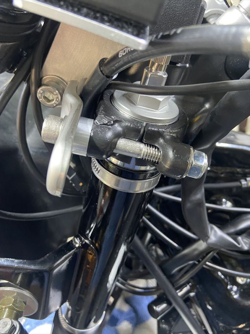 カウル内側とメーターが干渉するので、10ミリのスペーサーを追加してステーを若干前に出しました。