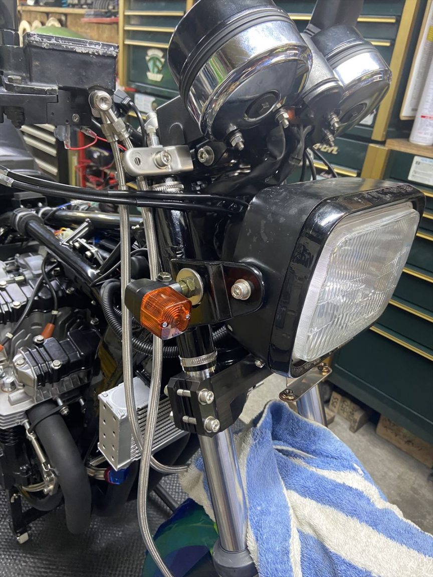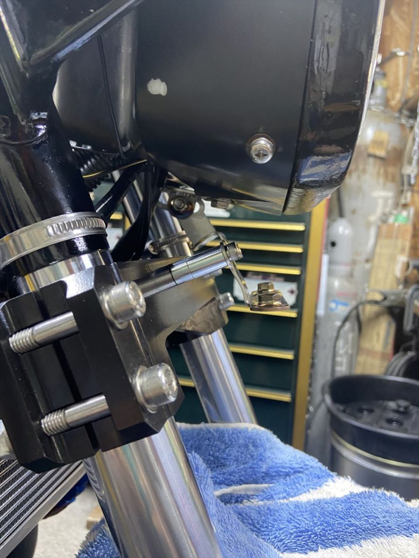 ロアーブラケットはカウルとヘッドライトの位置に合わせて少し曲げながら微調整して合わせます。