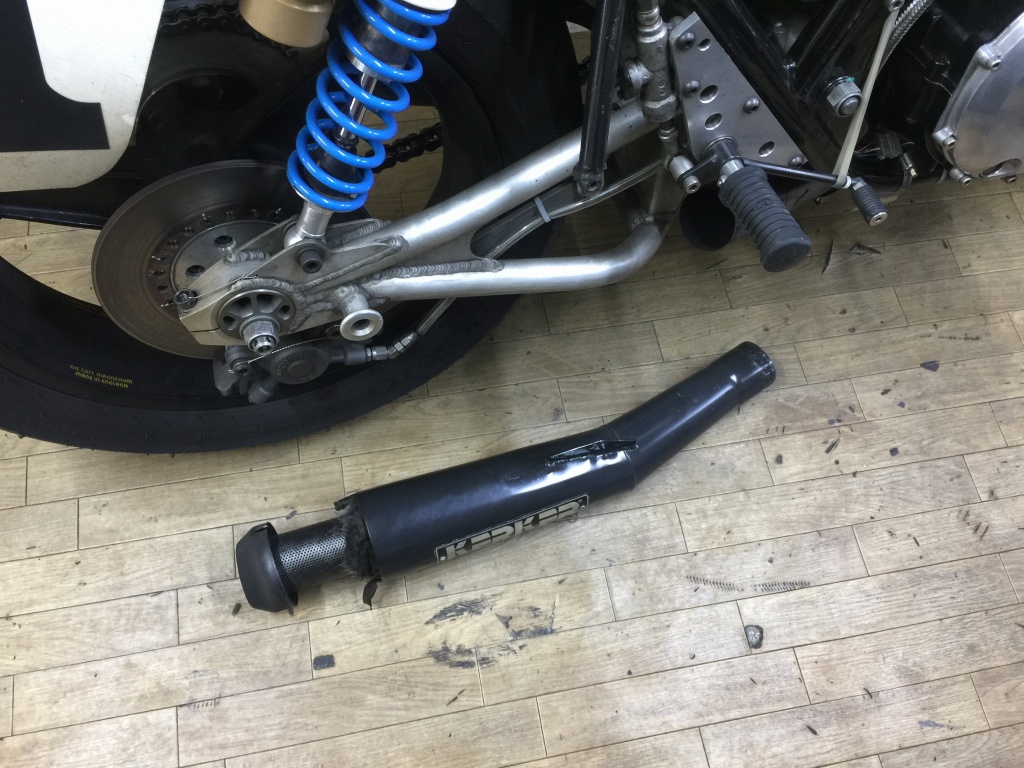 前回の筑波走行でバッフルが外れてしまったので修理します。