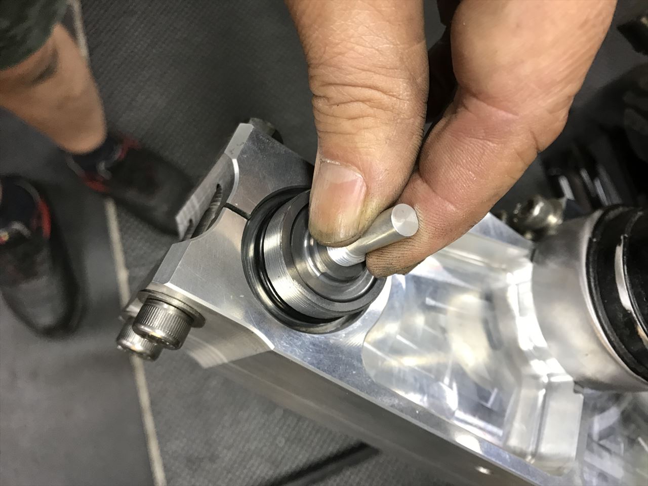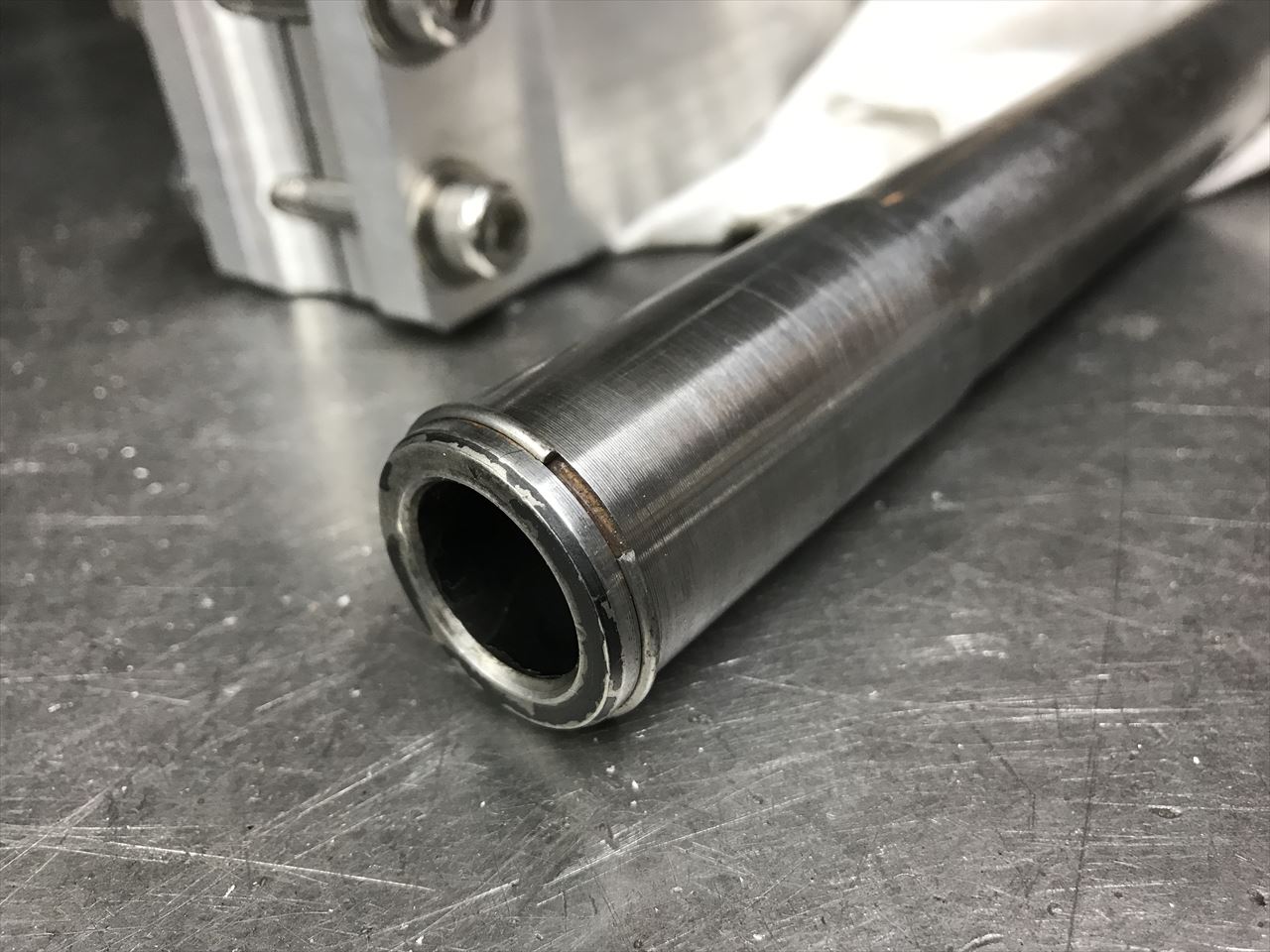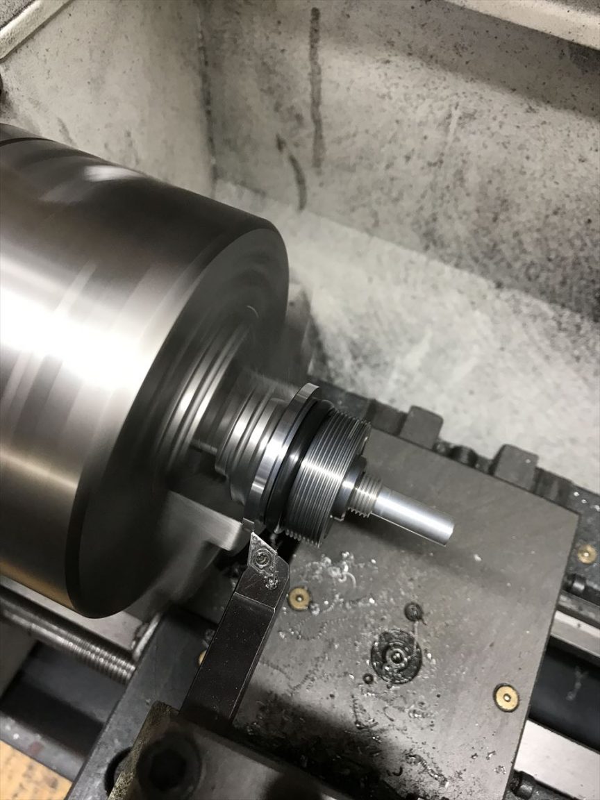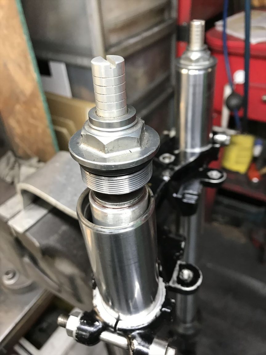 フォークキャップの外径を旋盤で少し落とします。