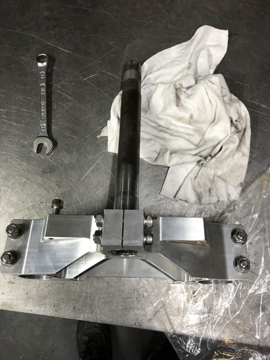 ステムシャフトを組むとこんな感じ。ステアリングダンパーは左右どちらでも付くタイプ。