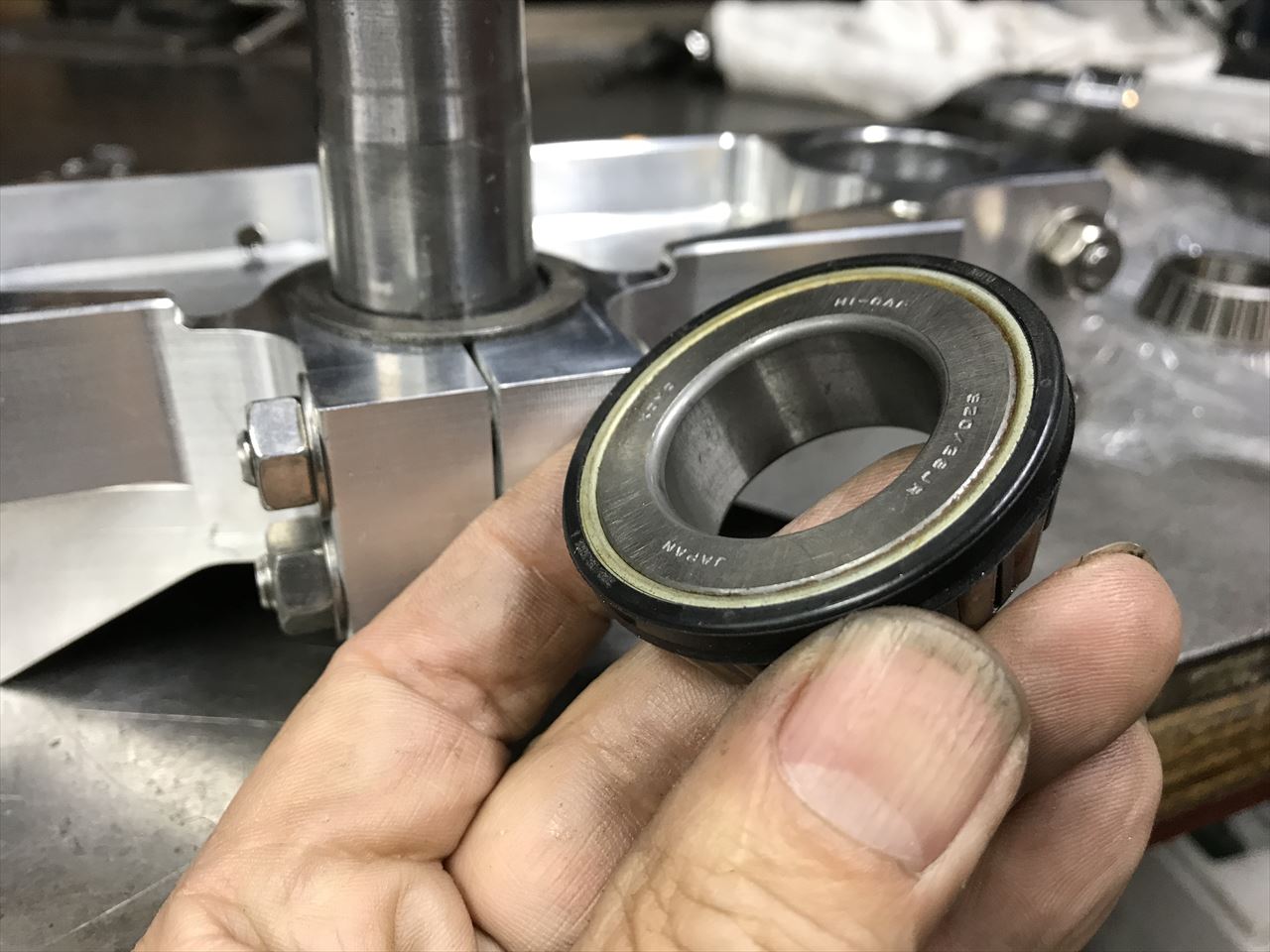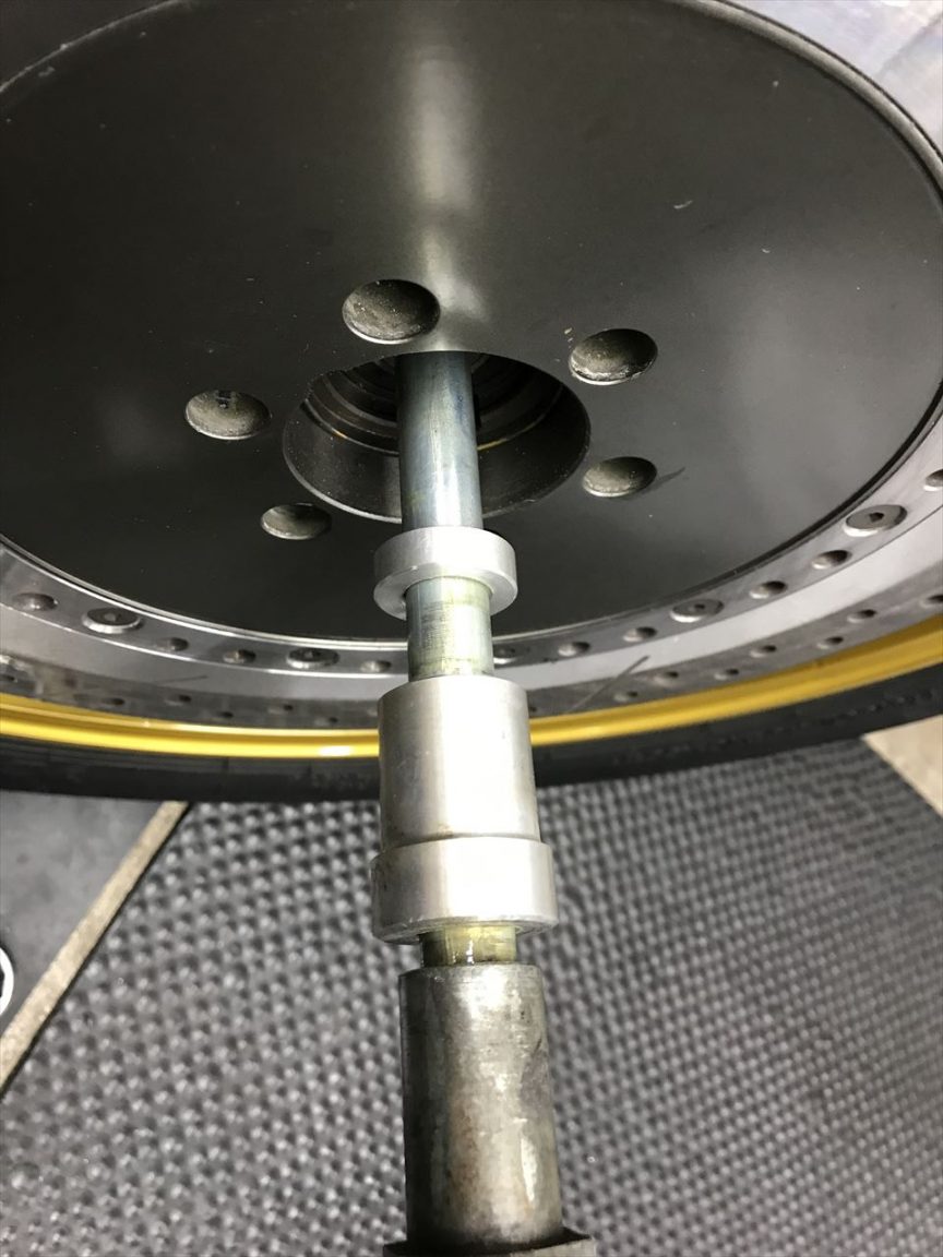 シールの出っ張りを逃げるため、ベアリングの下にスペーサーが入れてあります。
