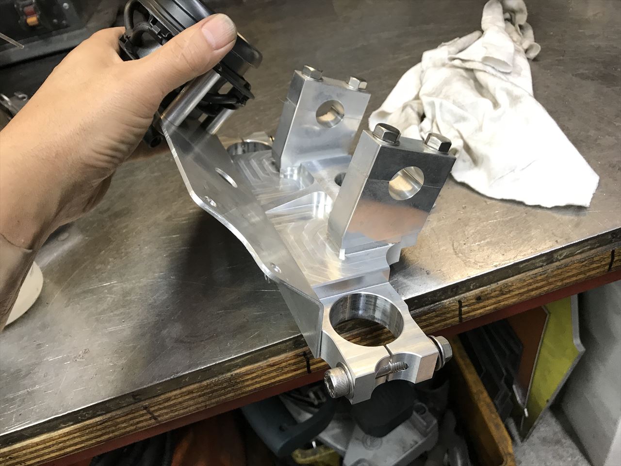 BL-FACTORYさんから引き継いだ車両の作業です。梅木さんからこの車両のことは一切聞けていないので、部品をひとつひとつ見ながら改造の意図や進捗を確認しながら進めていきます。