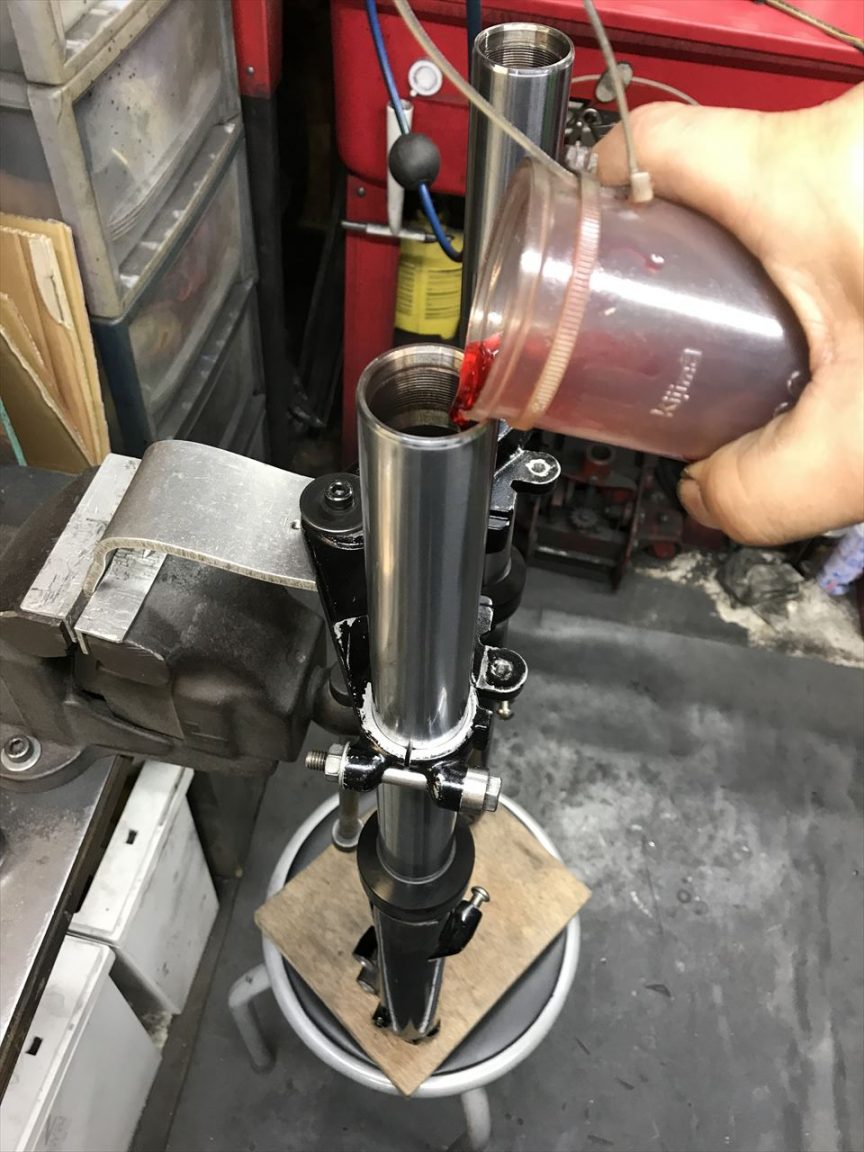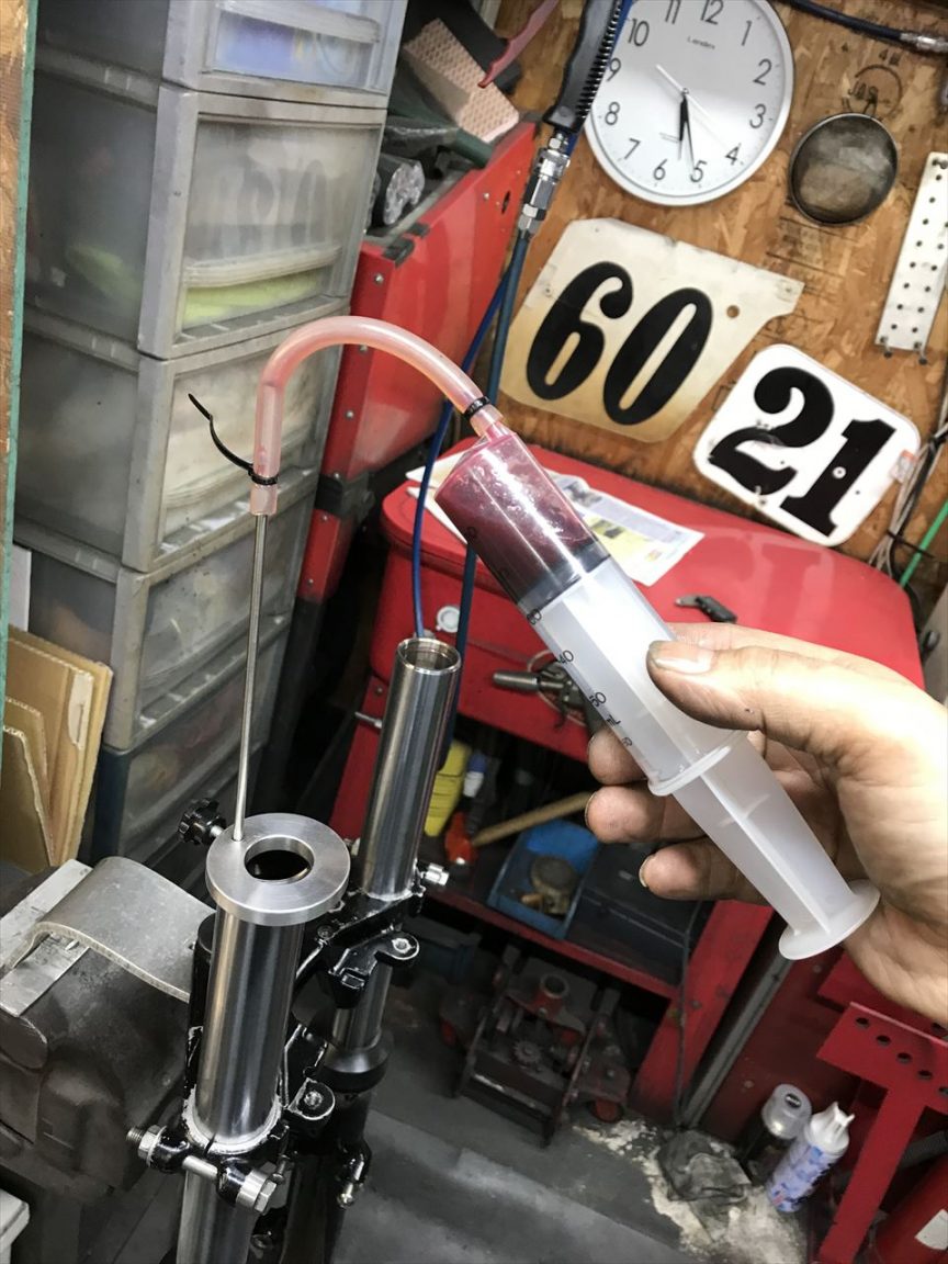 フォークは古いオイルを交換します。