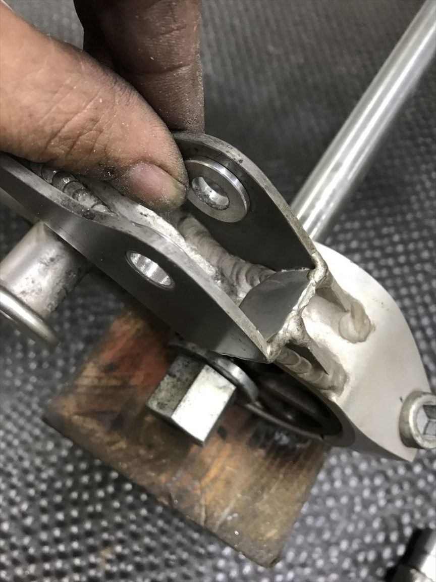ZXR250純正スタンドを使用し、溶接用のボスをセットします。