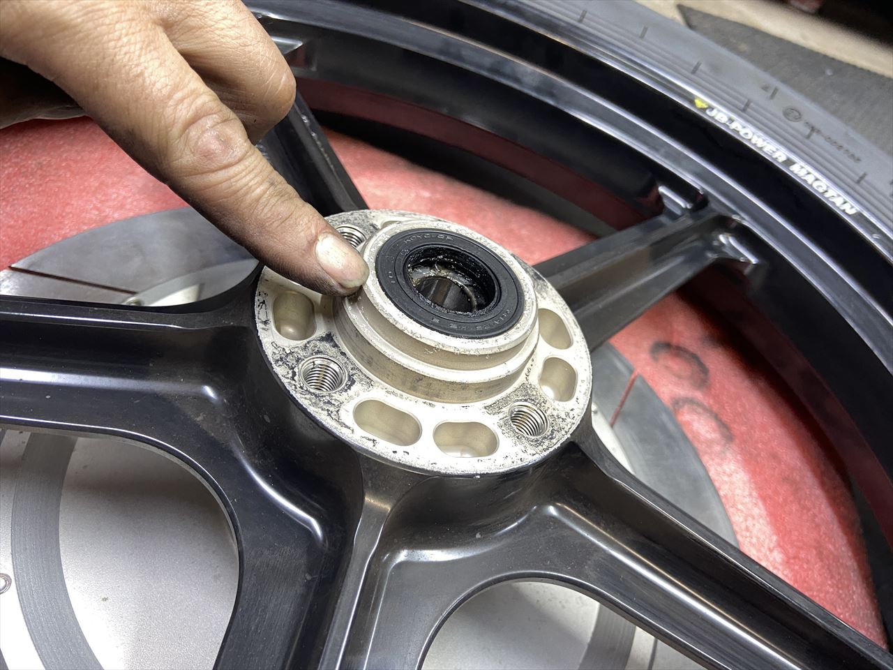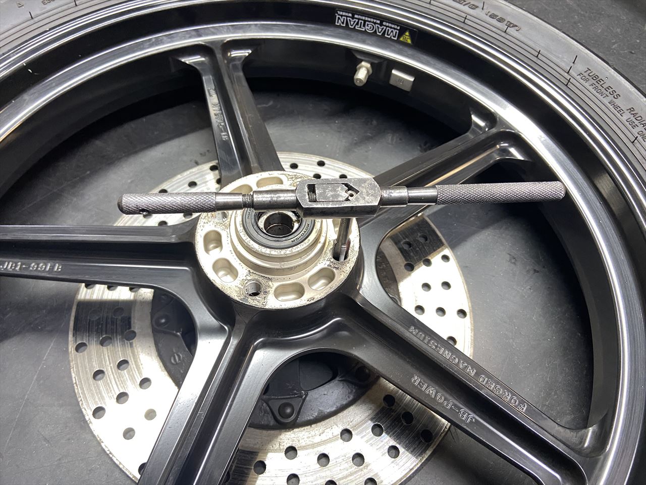 ハブを削り、ホイールベアリングを外します。S1ローターはベアリングがインナーローターに組み込まれます。