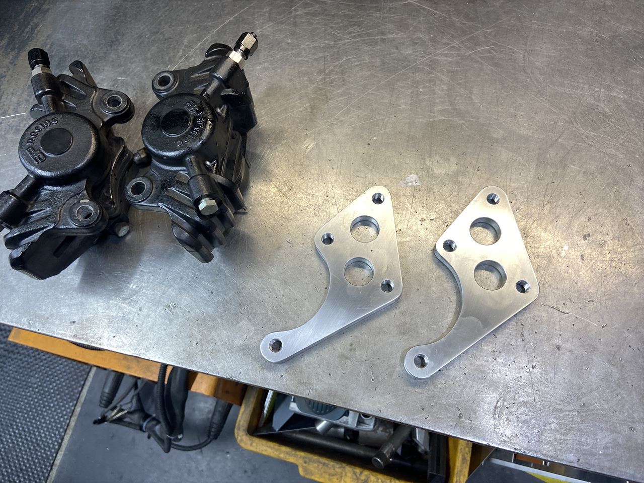 キャリパーを取り付け確認します。一気にスパルタンになりましたね。