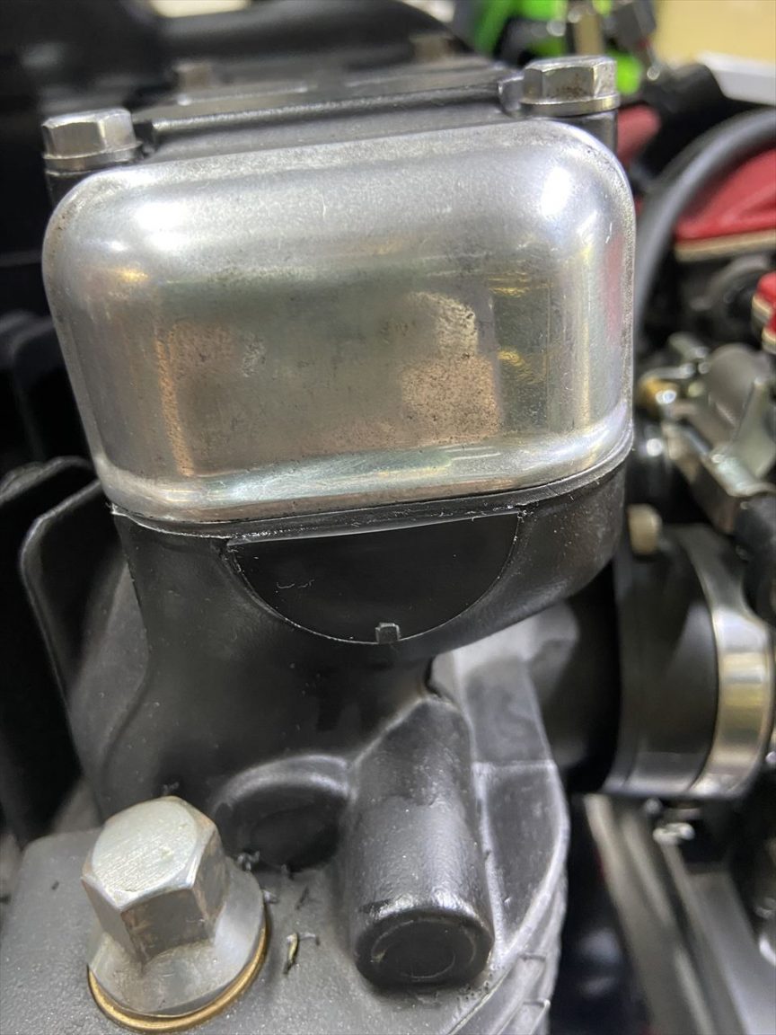 カムプラグのところは液体ガスケットがはみ出すので、ふき取っておくと見栄えがいいです。