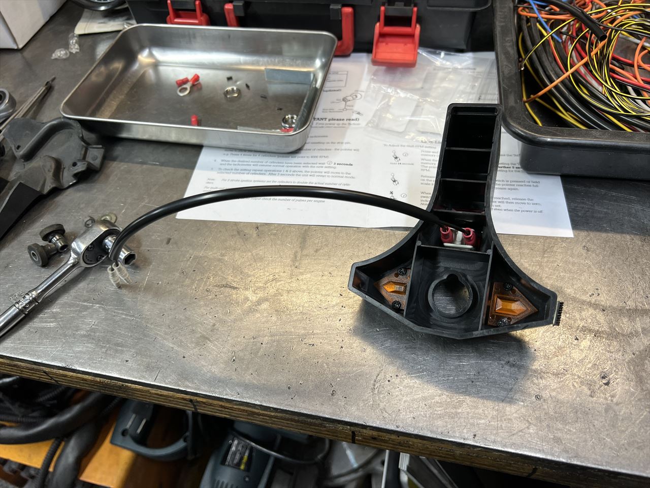 裏側はこんな感じ。ケースは純正タコメーターの他、純正形状の社外メーターや、スピードメーターのケースを使って作ることもできるそうです。