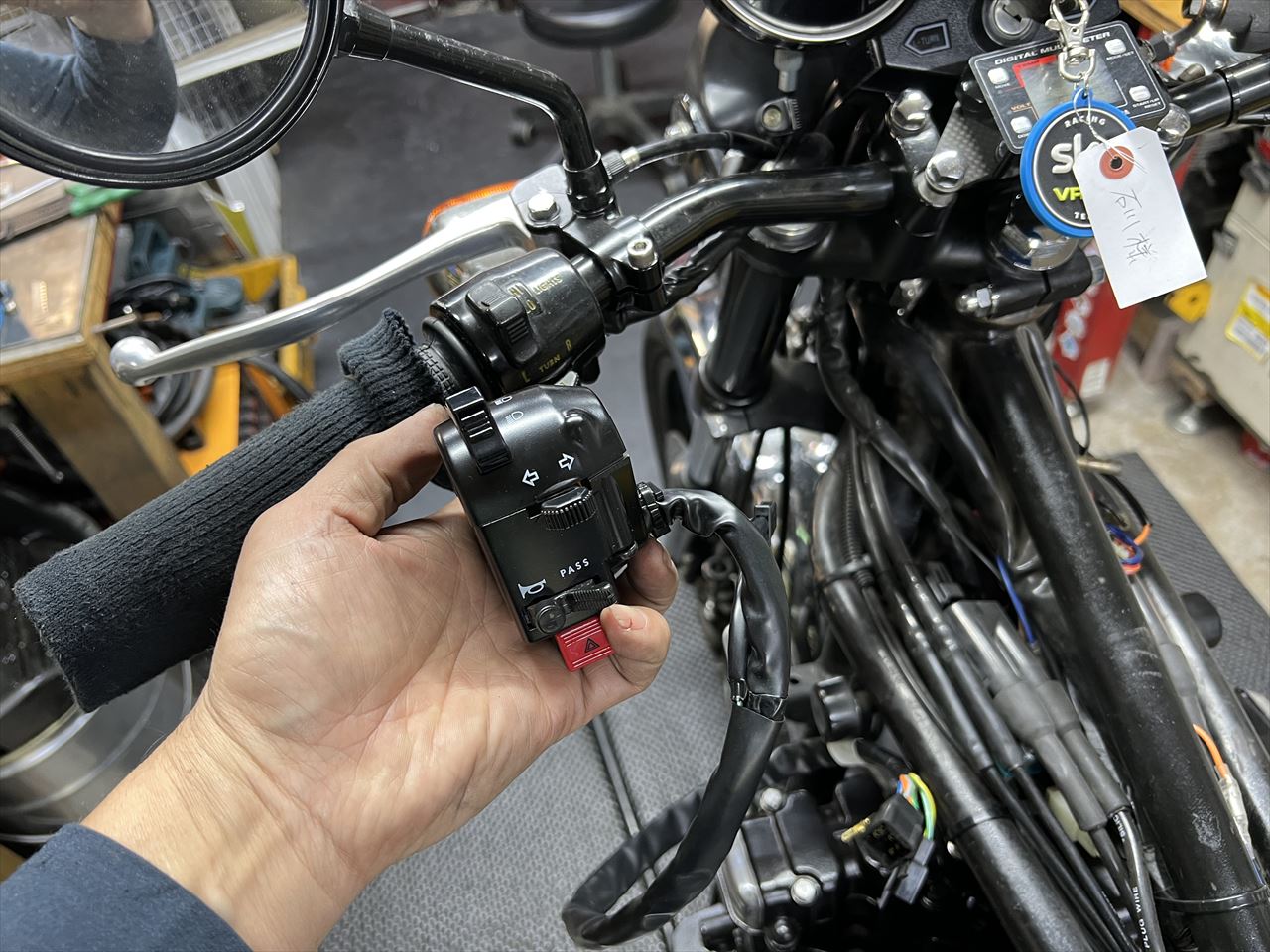 タコメーターを取り付けます。取り付けは純正と同じです。
