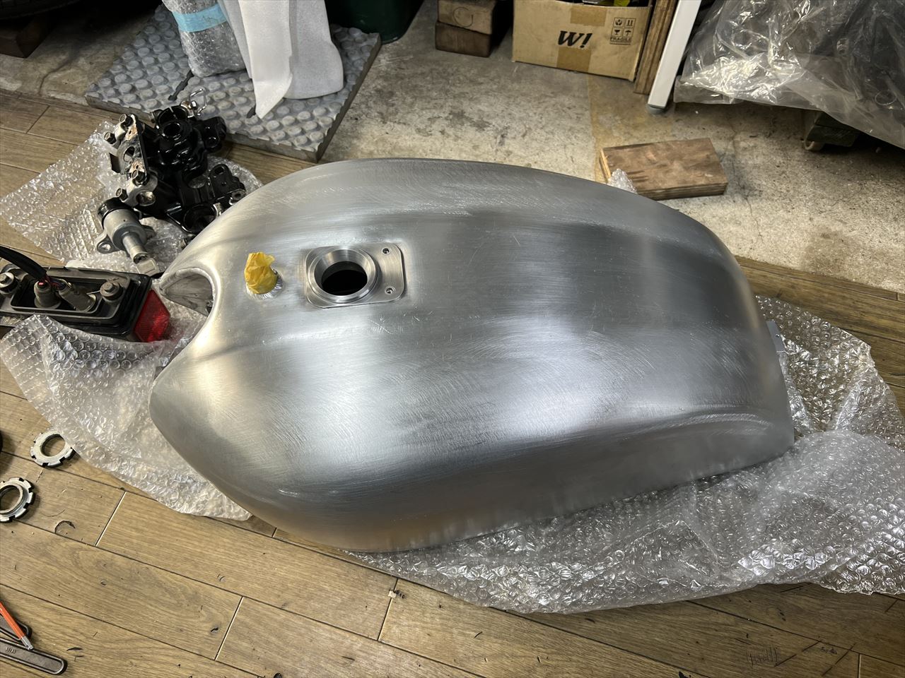丸タンクのワークスS1仕様製作のご依頼です。今回は主にフレームワークのみの加工で、必要な部品をお持ち込みいただきました。