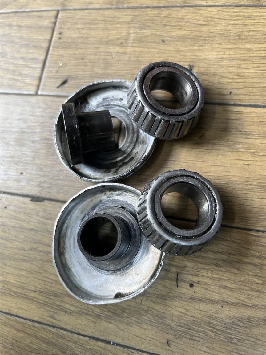 ベアリングはドイツ製のテーパーローラータイプ。ローラーの1個は割れていました。修理方法を検討しなくては。