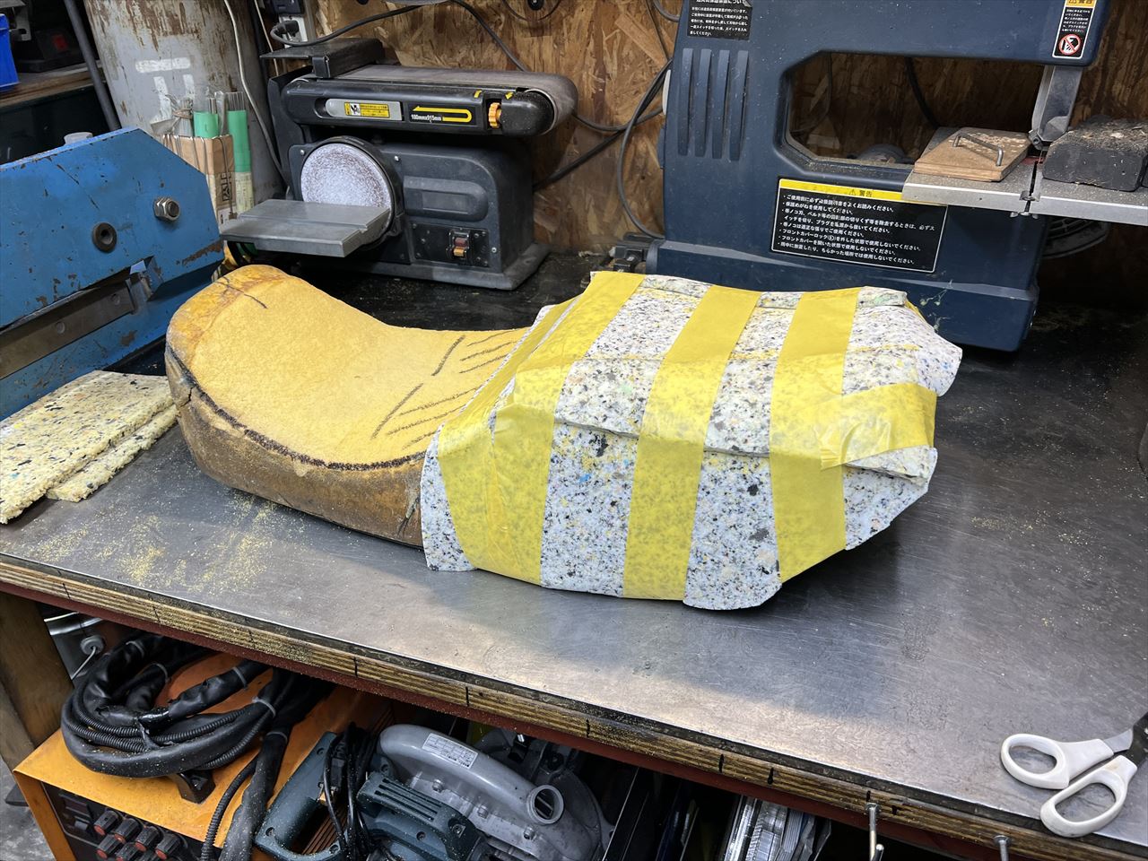 表皮が剥がれました。タンデム部分の両肩はスポンジが欠けていますね。