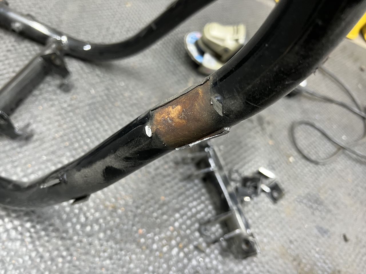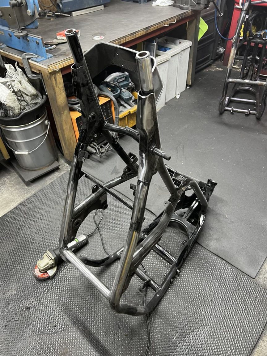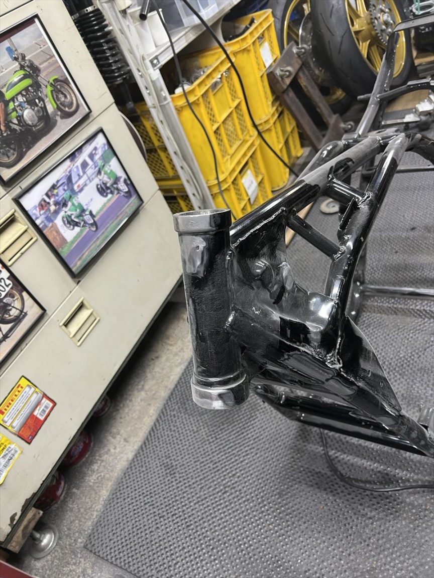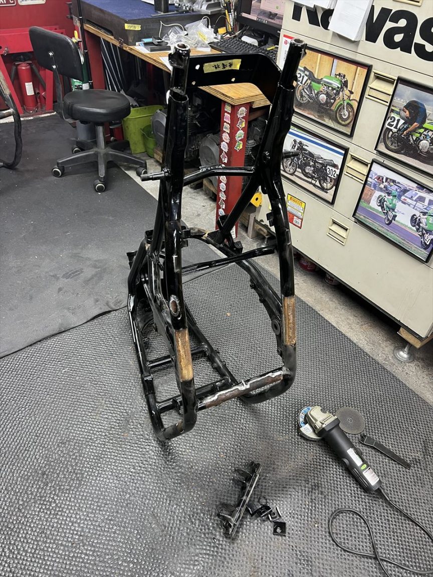 S1仕様に向けてフレームを加工します。フレームはリペイントされてきれいですが、今回の加工後に再度塗装するとのことです。