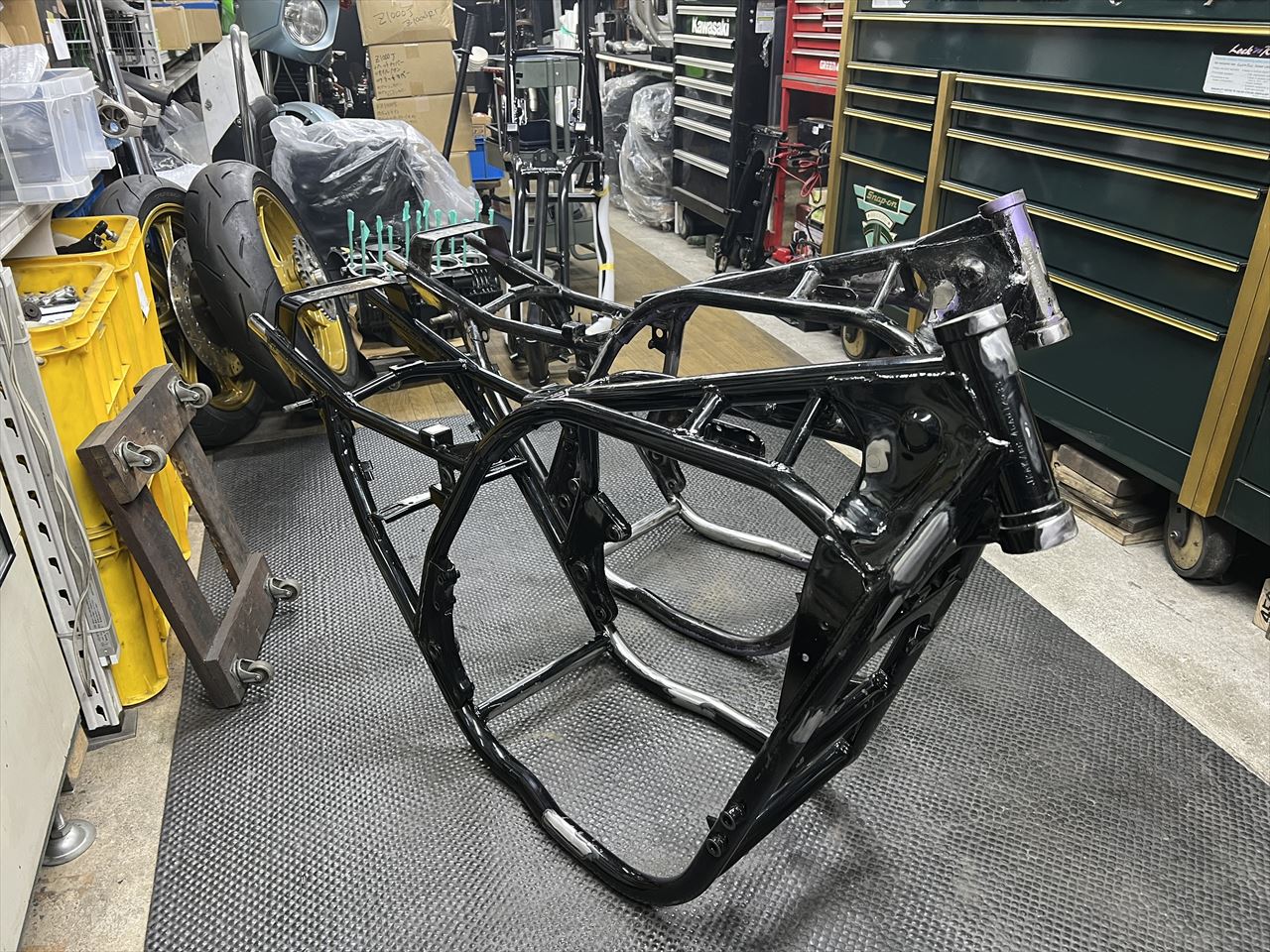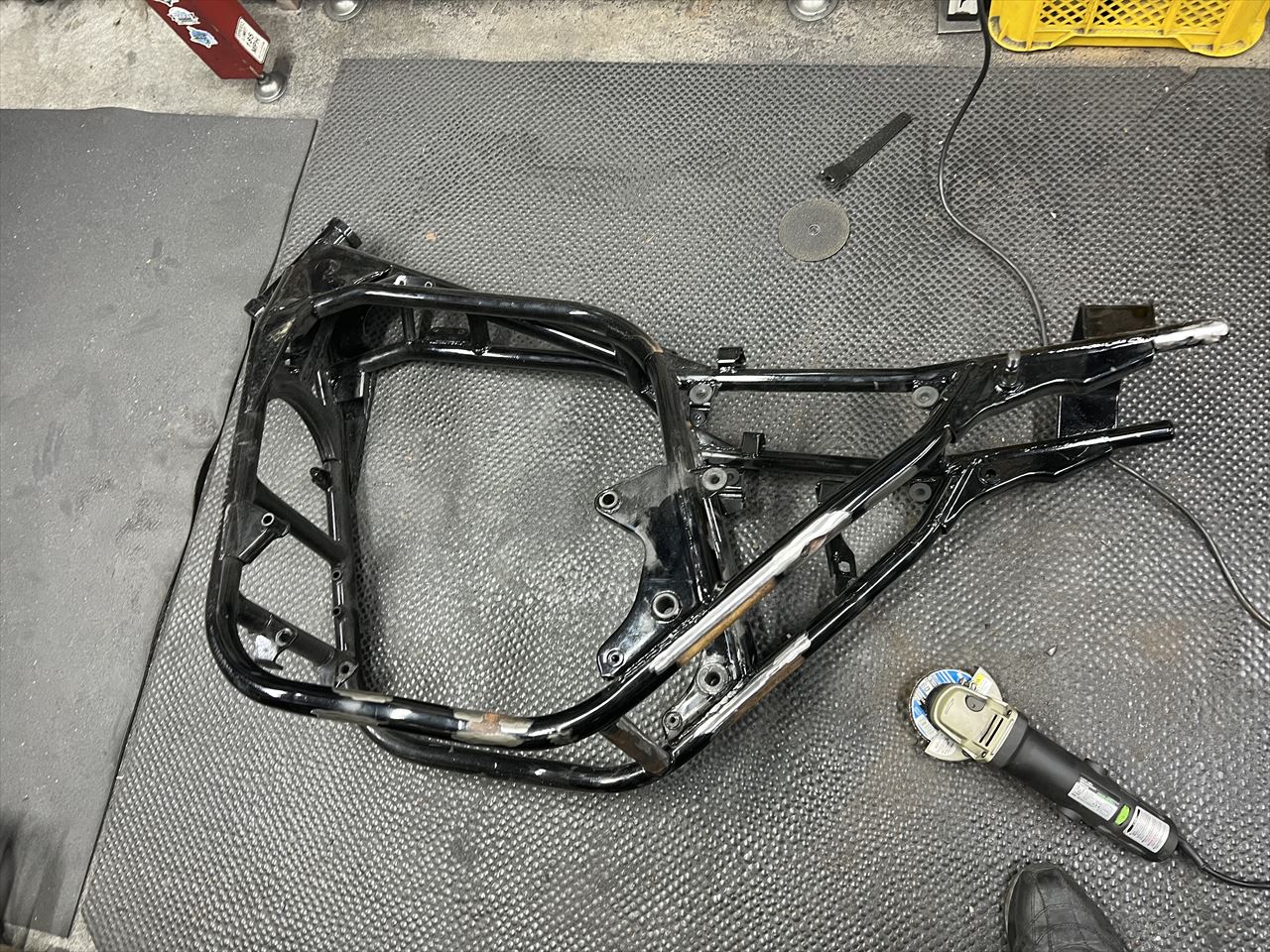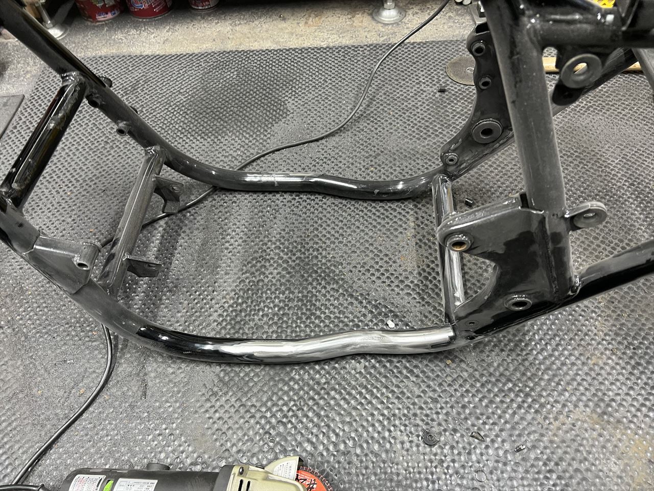 S1仕様に向けてフレームを加工します。フレームはリペイントされてきれいですが、今回の加工後に再度塗装するとのことです。