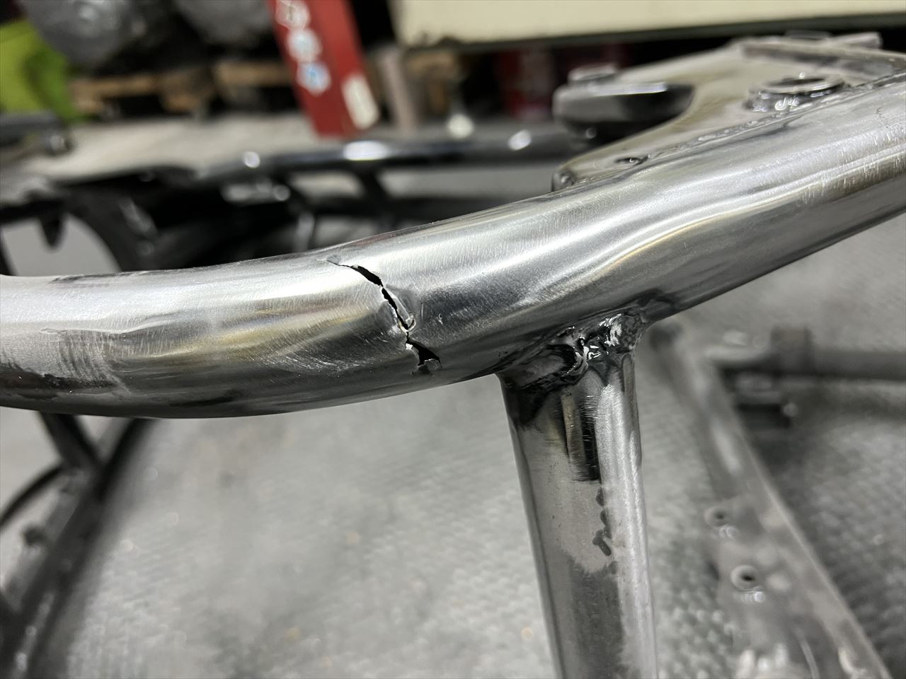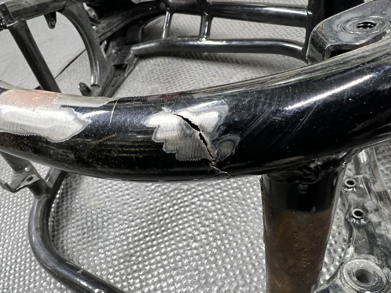 よく見ると大きなクラックでした。フレームの1/3ほどが破断しています。