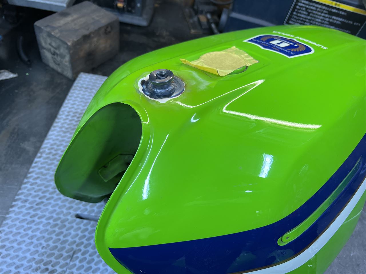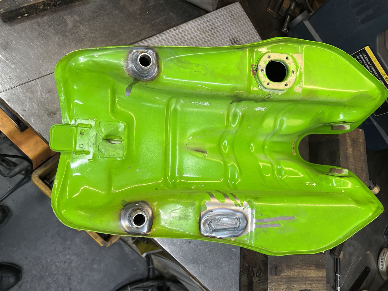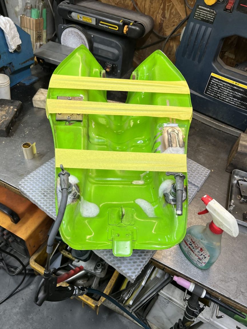 コックニップル2個を溶接。元のコック穴も溶接で塞ぎます。
