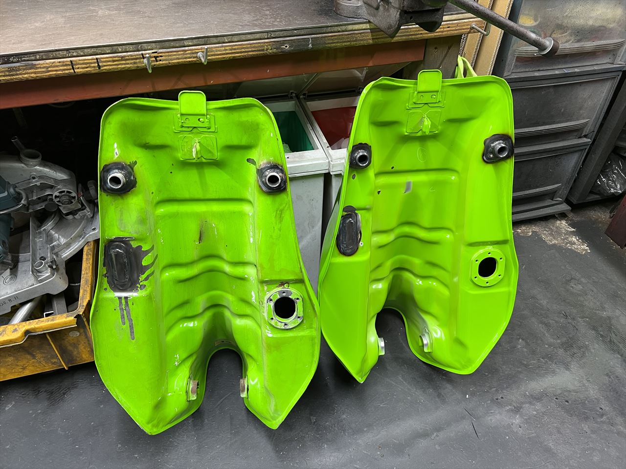 続いてスペアのタンクの加工です。真ん中のR2カラーのものを素材にします。