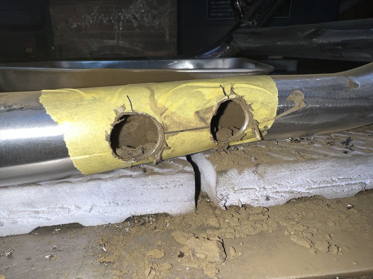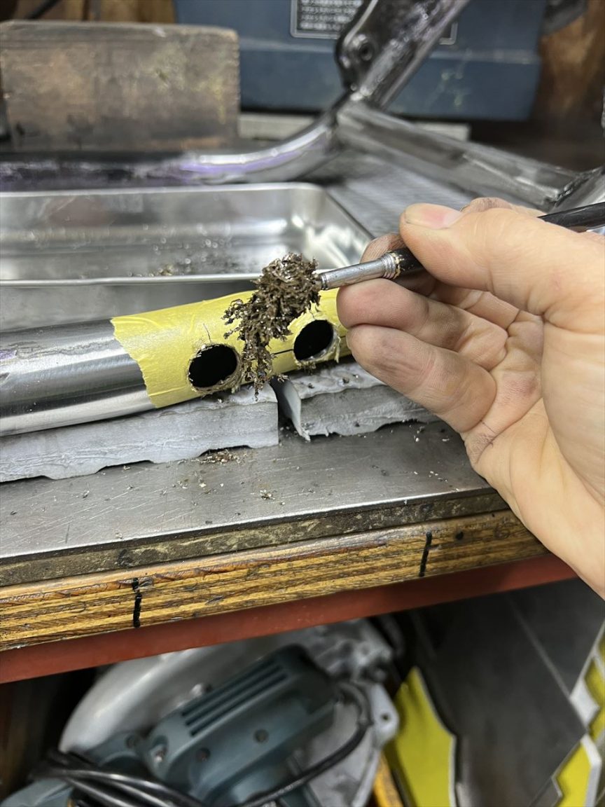 異物は全て取り除きました。パイプ内部の腐食はやや多めです。肉の痩せ比較的少ないので大丈夫でしょう。