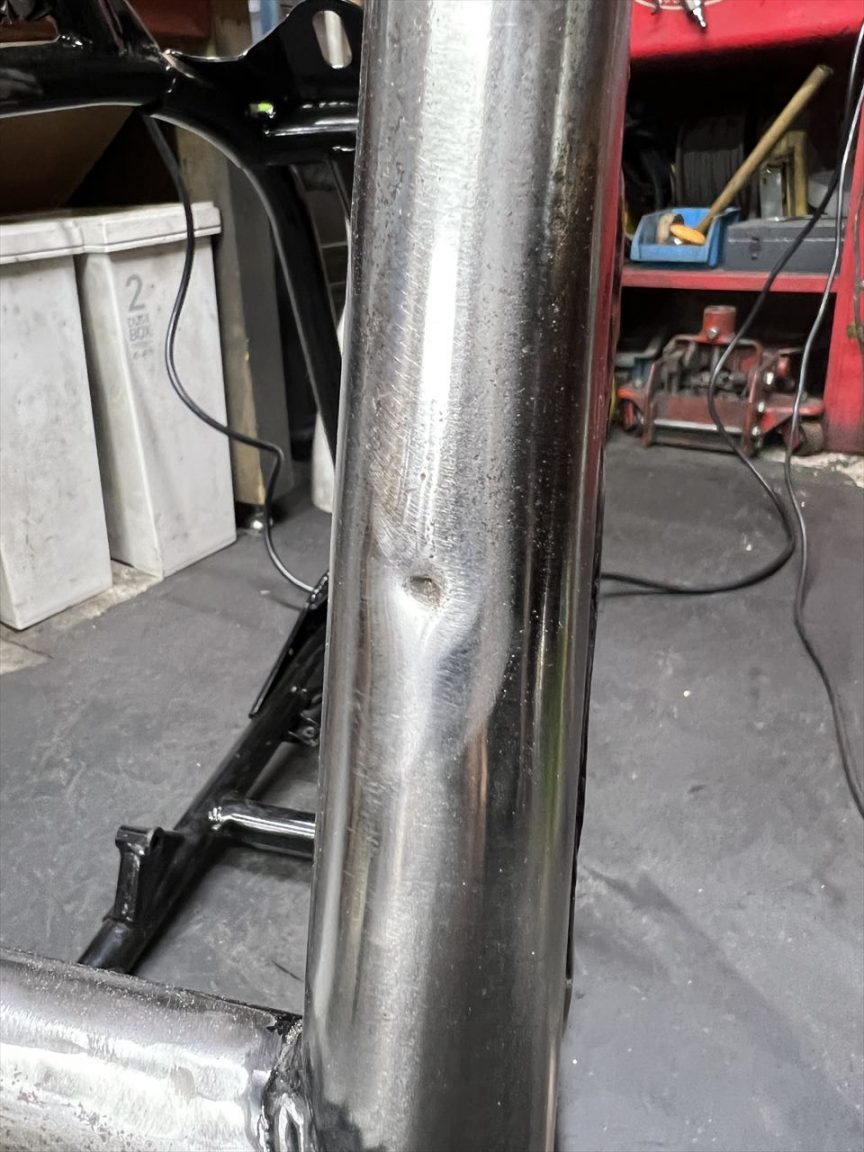 Z1100B2 K.A様 ワークスS1仕様製作 フレーム加工 ロックケーブル穴埋め