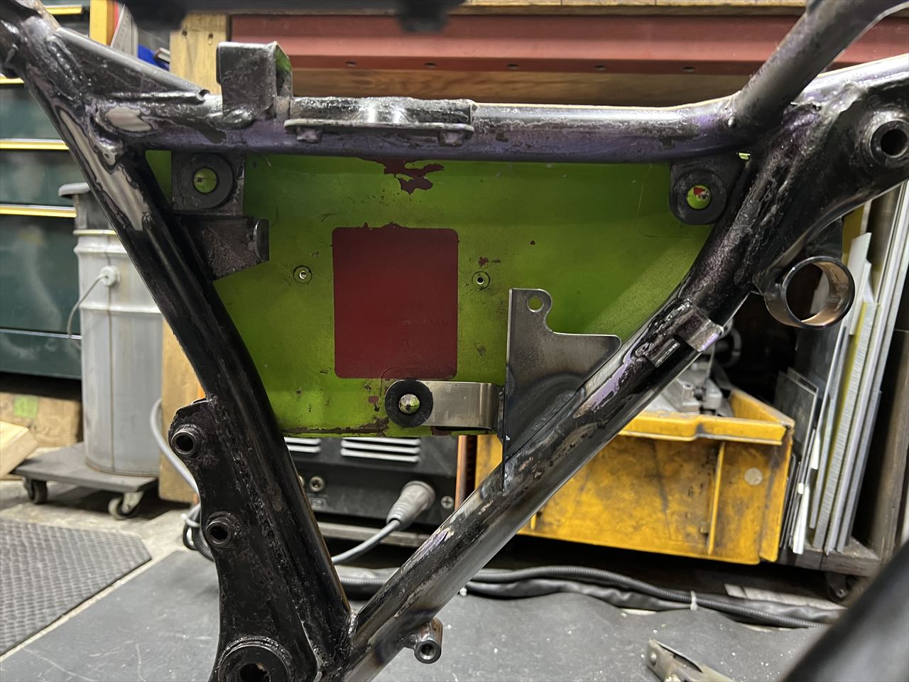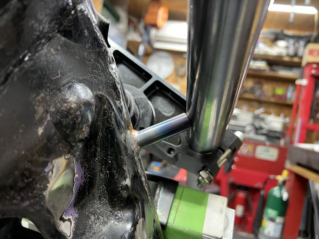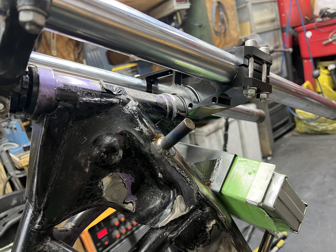 S1タイプのリヤリザーバータンクステーを溶接します。