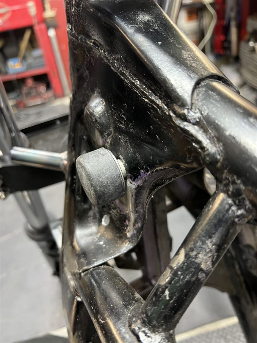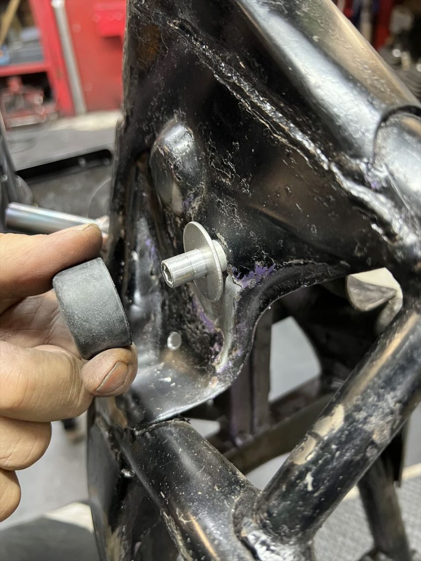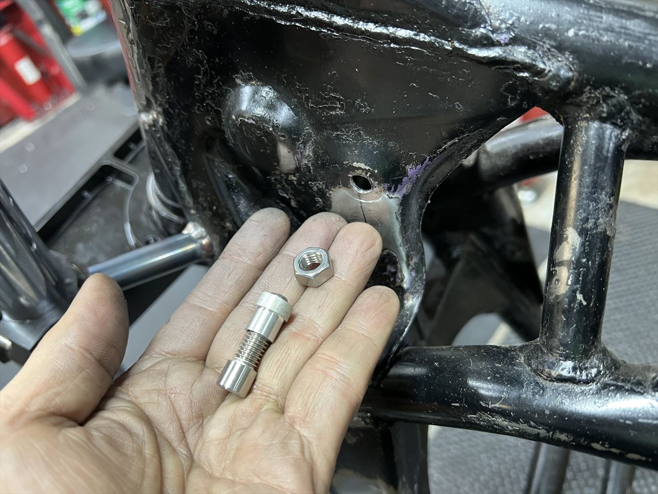 新たなマウントは、頭を削って小径にしたボルトと段付きのカラーをボルト止めして設置します。