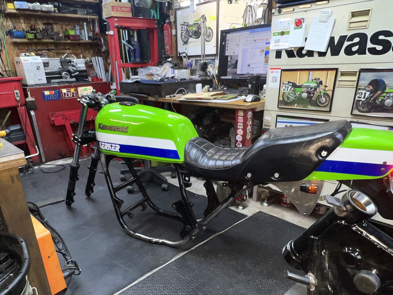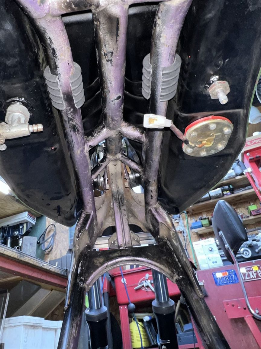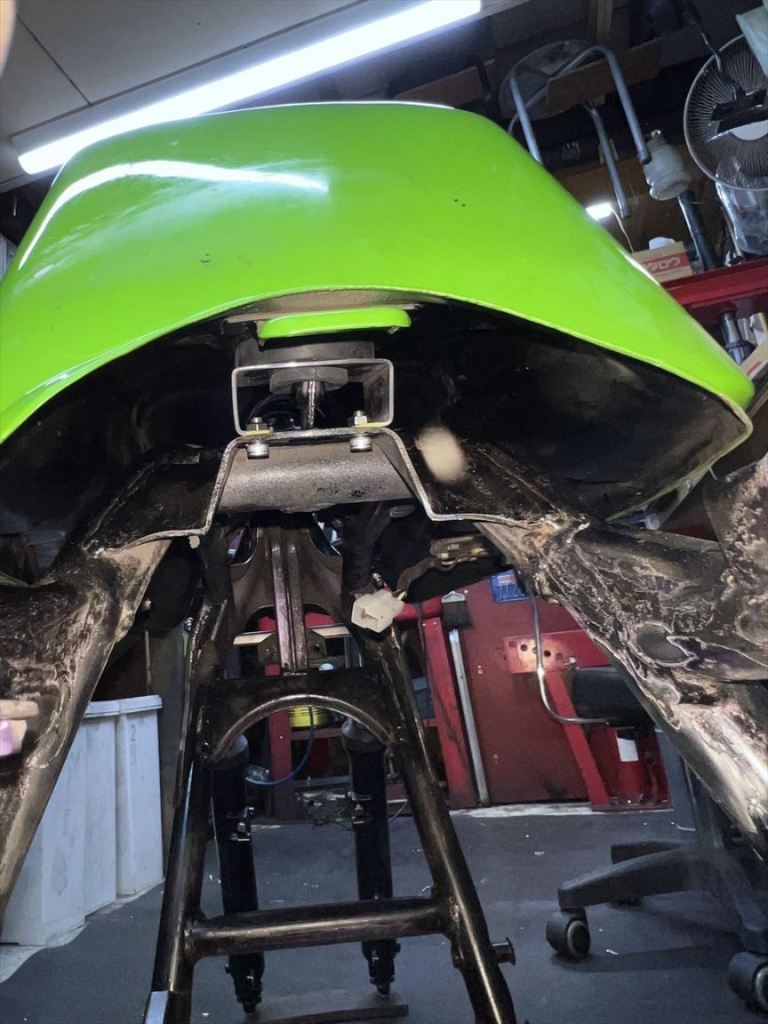 ワークス車同様にタンクマウントを上に少し上げます。フロントはガセットに穴開けします。