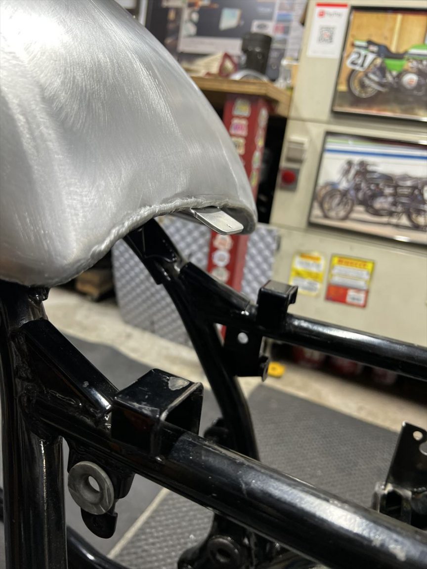 タンク上げ加工しているので、そのままではタンク後ろのベロがシートに食い込んでしまいます。