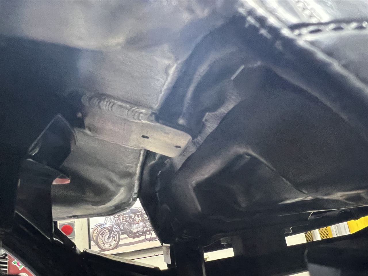足回りも外し、フレーム裏側からも溶接します。