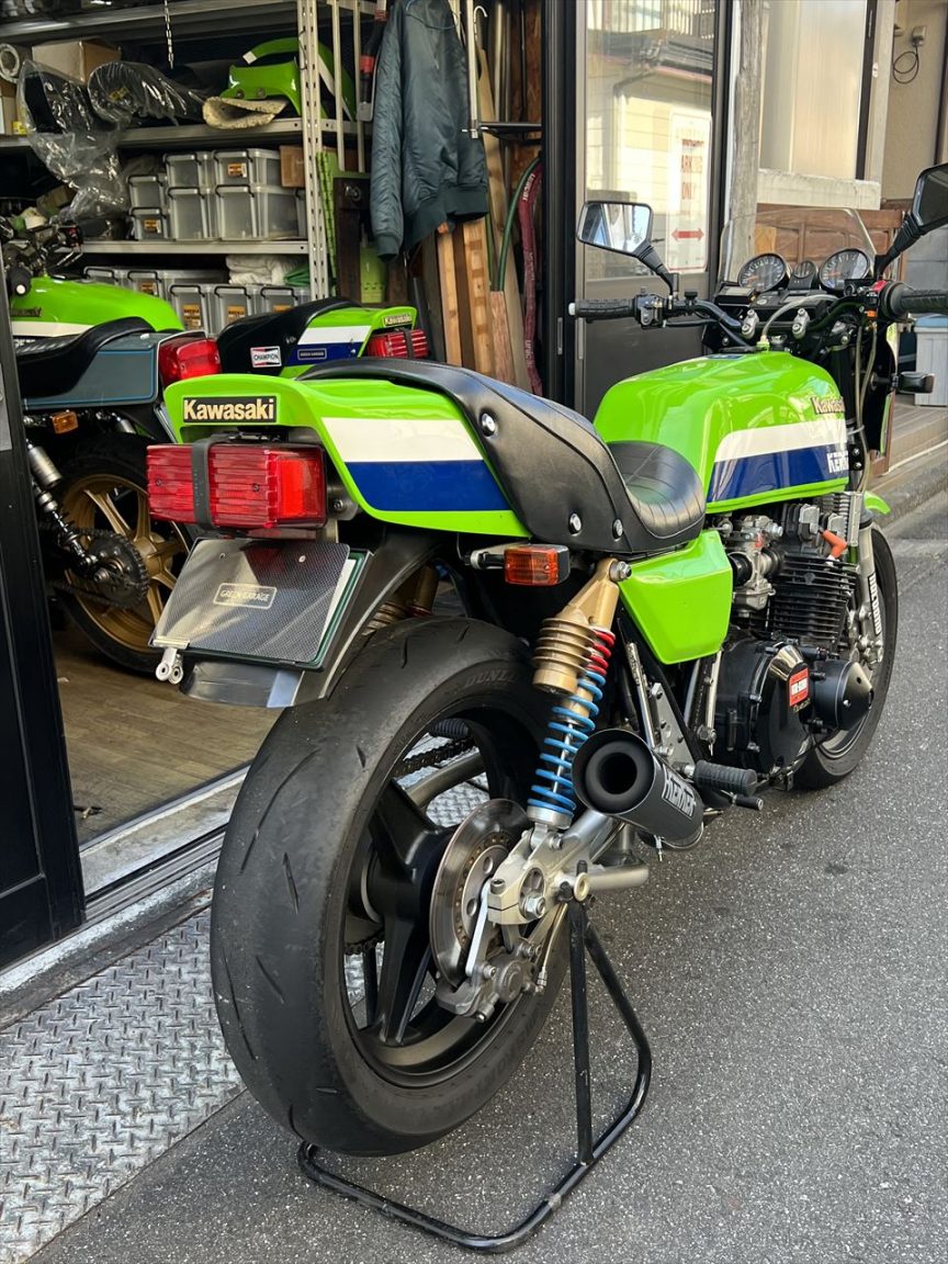 投稿日: 2021年12月24日2021年12月24日 投稿者: greengarage販売車両のご紹介 Z1100-B2 ワークスS1仕様 先日入荷した販売車両を簡単にご紹介します。Z1100-B2 1982年式 弊社ワークスS1仕様 車検令和4年7月 ここからもう少し手を入れる予定なので、価格などはまだ決まっていません。お探しの方は直接ご相談ください。 動画はこちら。