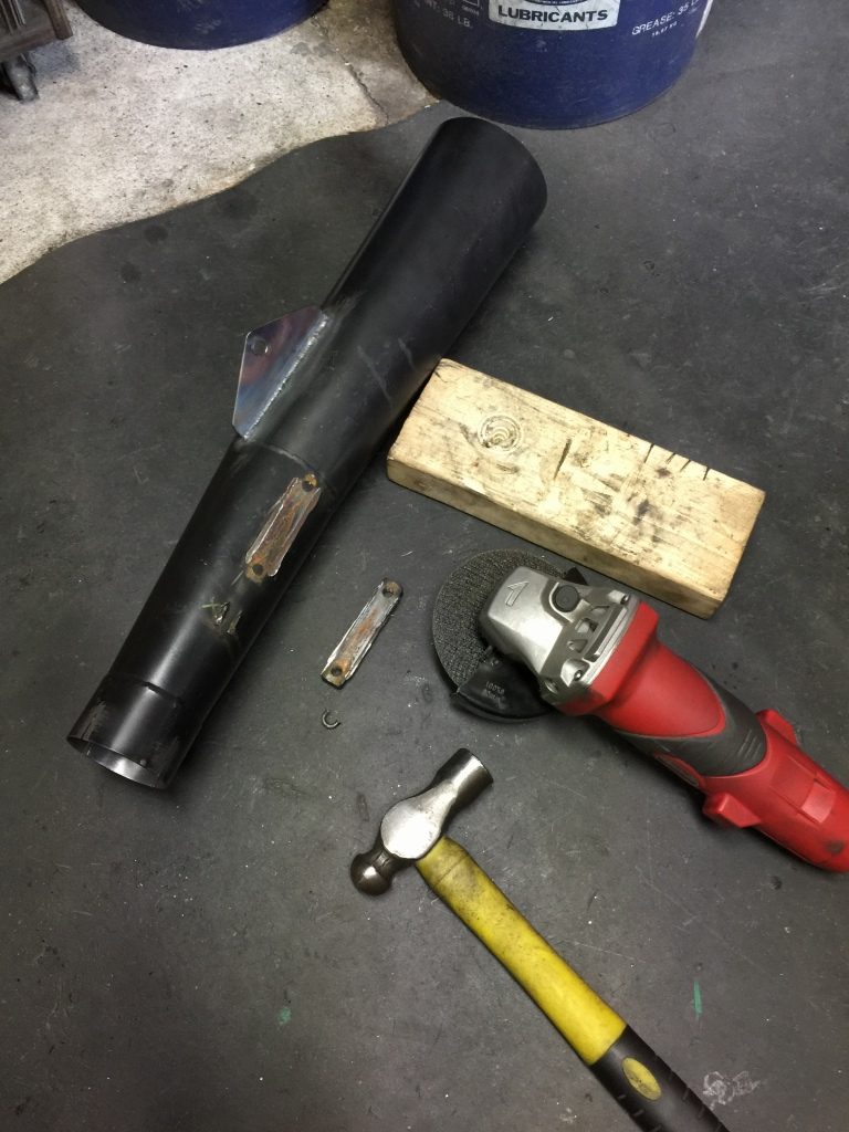 サイレンサーの差し込み部分は、4方に割りを入れてバンド止めににします。