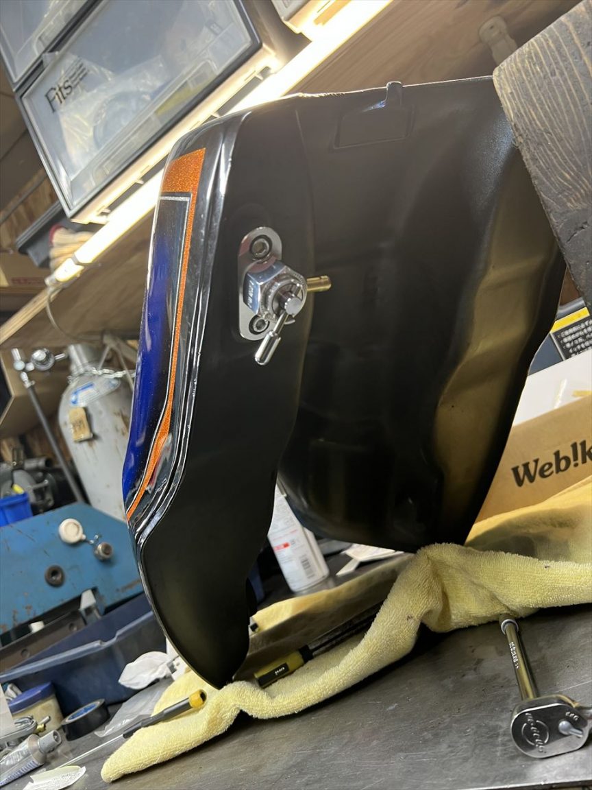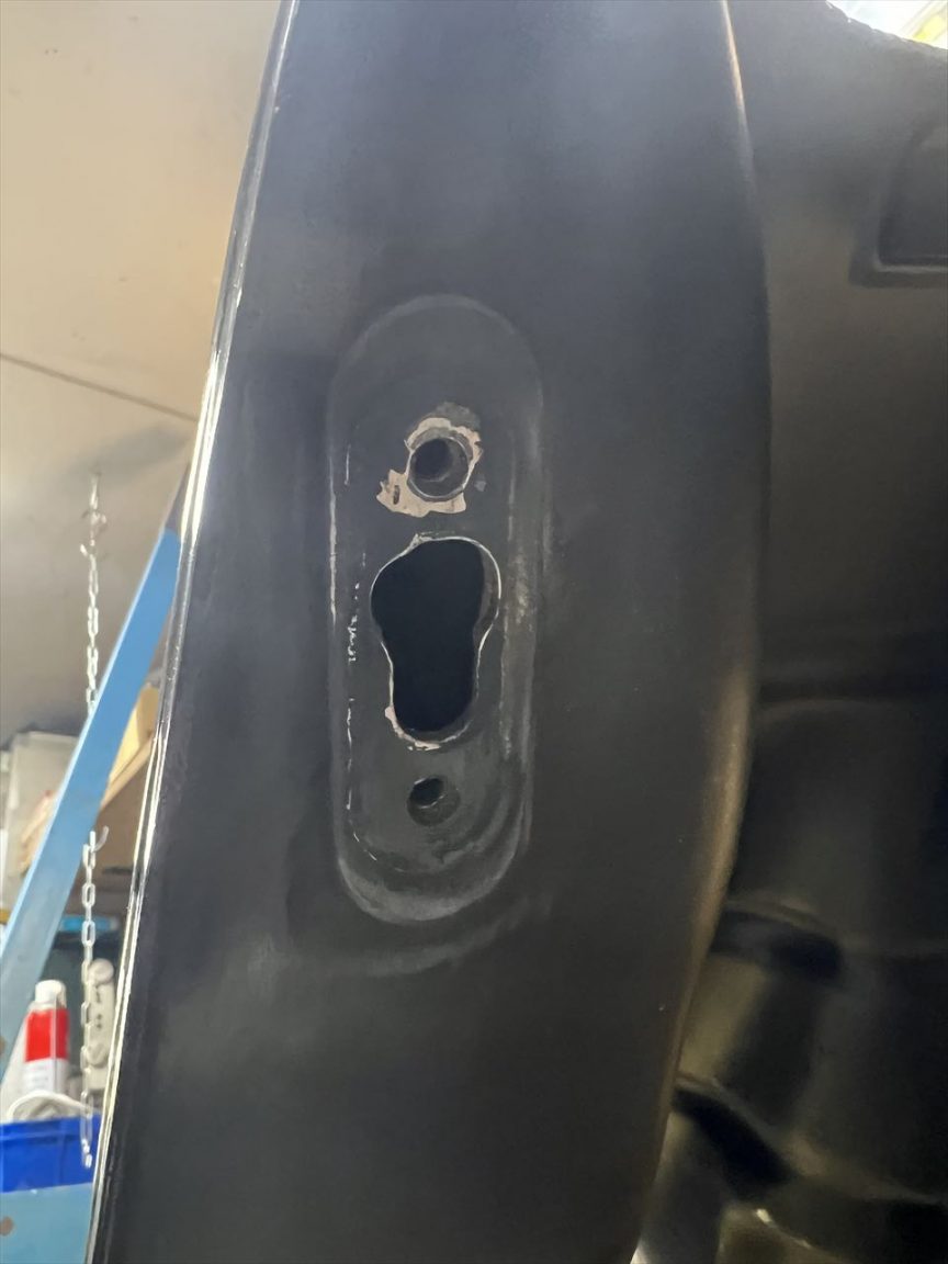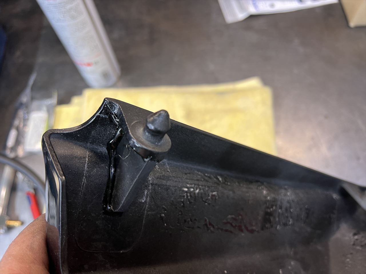 サイドカバーの爪折れ個所は、裏側に補強を接着します。