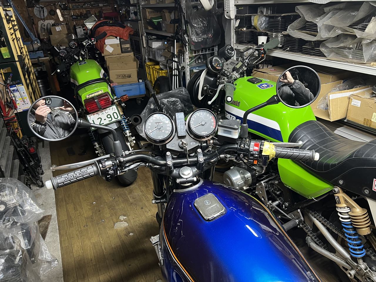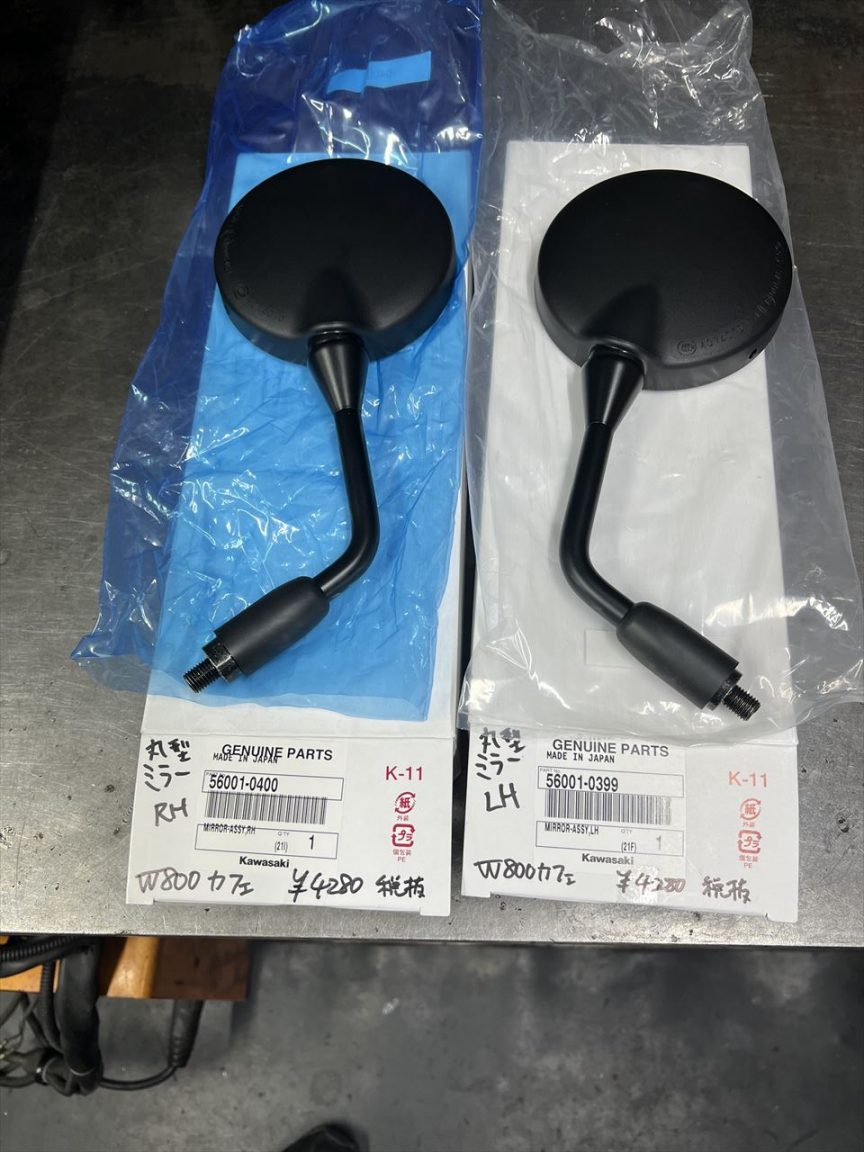 ミラーは「ブレない」という情報をもとに、W800カフェの丸型をチョイス。