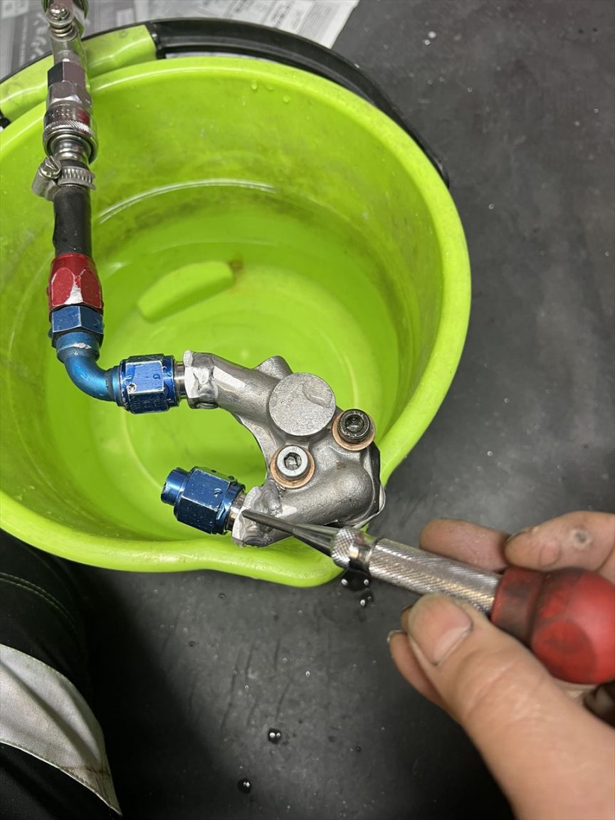 少しのピンホールなら、ポンチで潰せばリークは止まります。