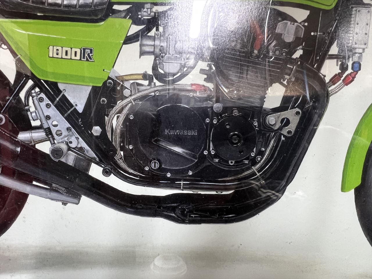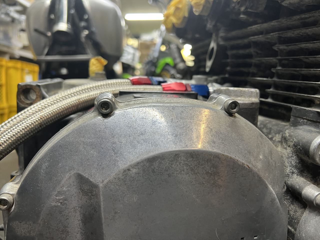 実際の通し方はこんな感じで、エンジンとフレームの間に通します。