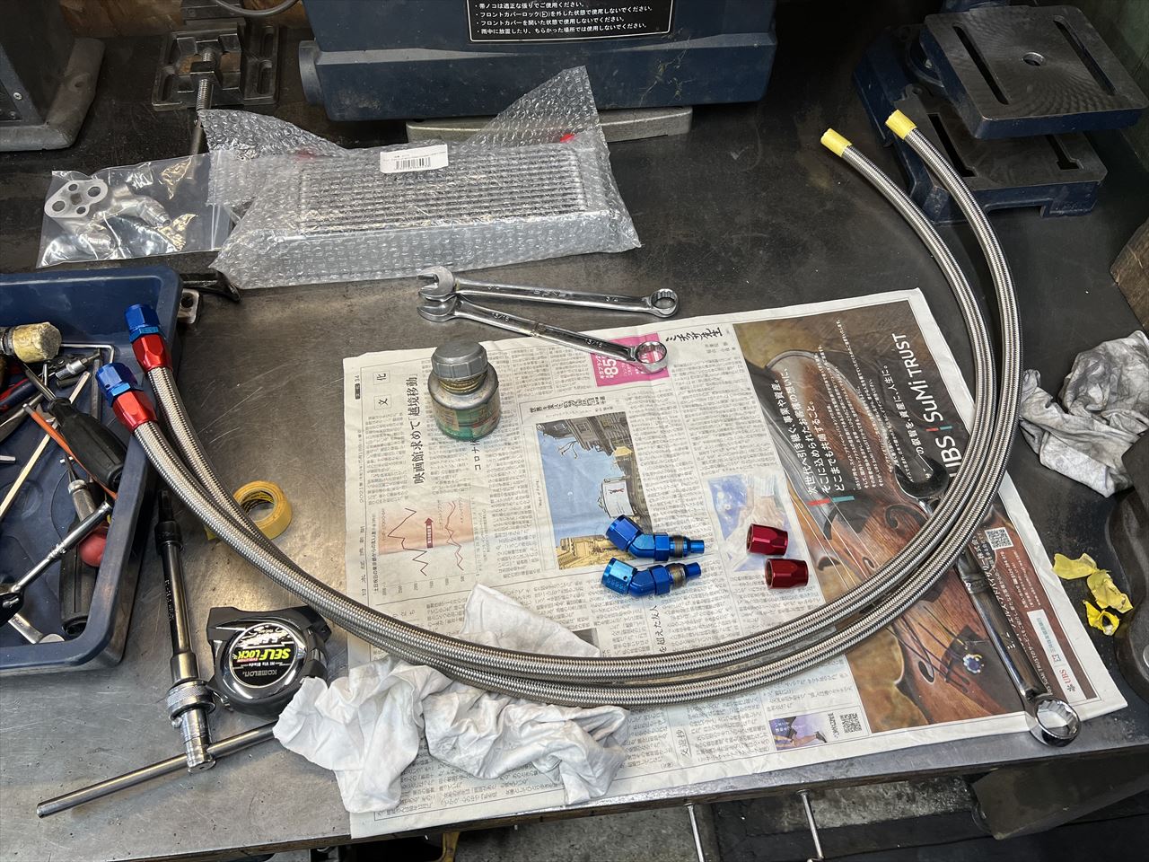 次に現車合わせでオイルホースを製作します。先ず、少し長めにリールから切り出します。