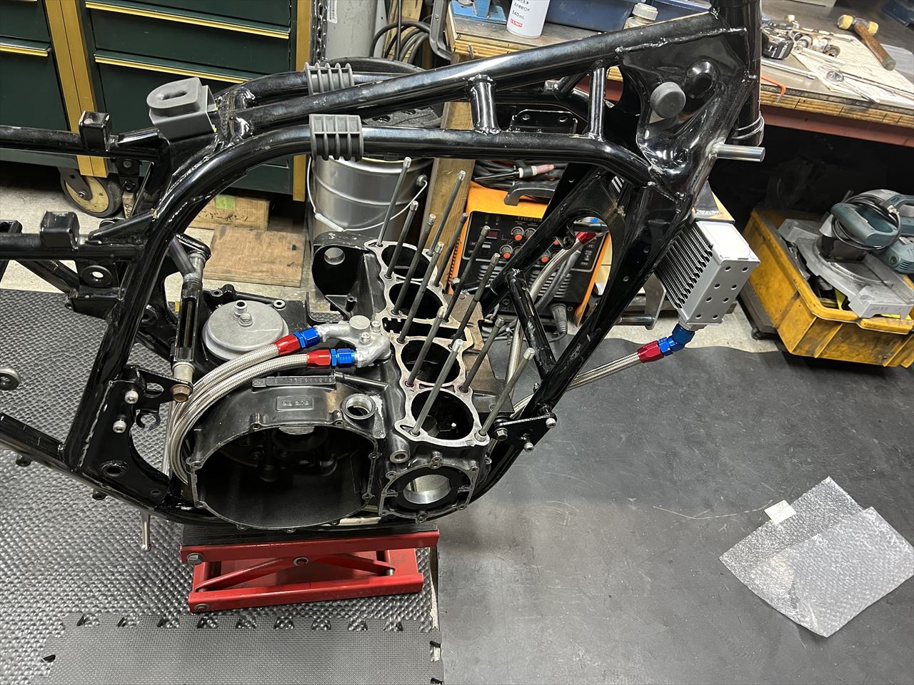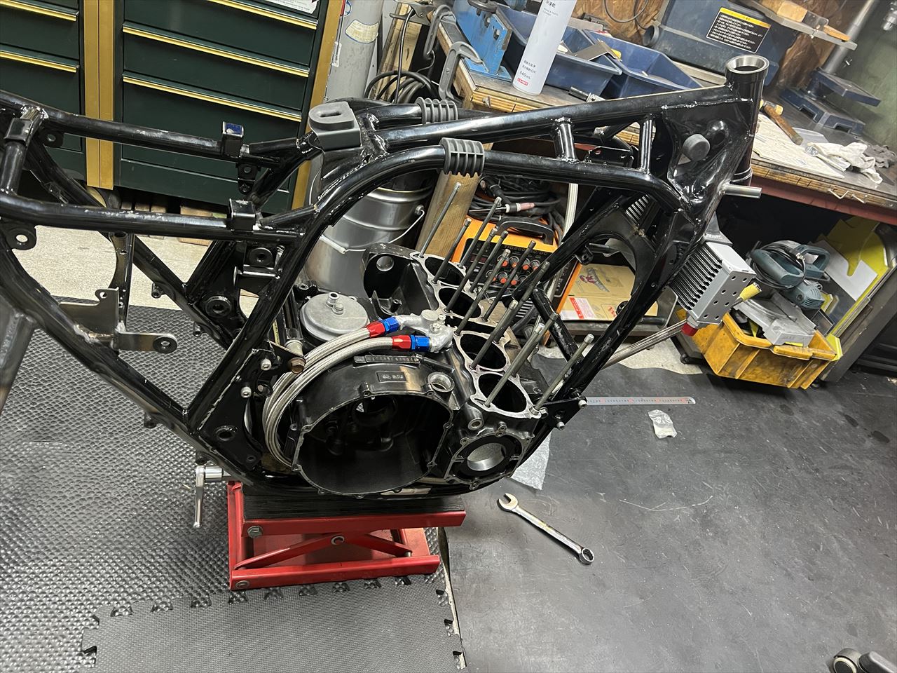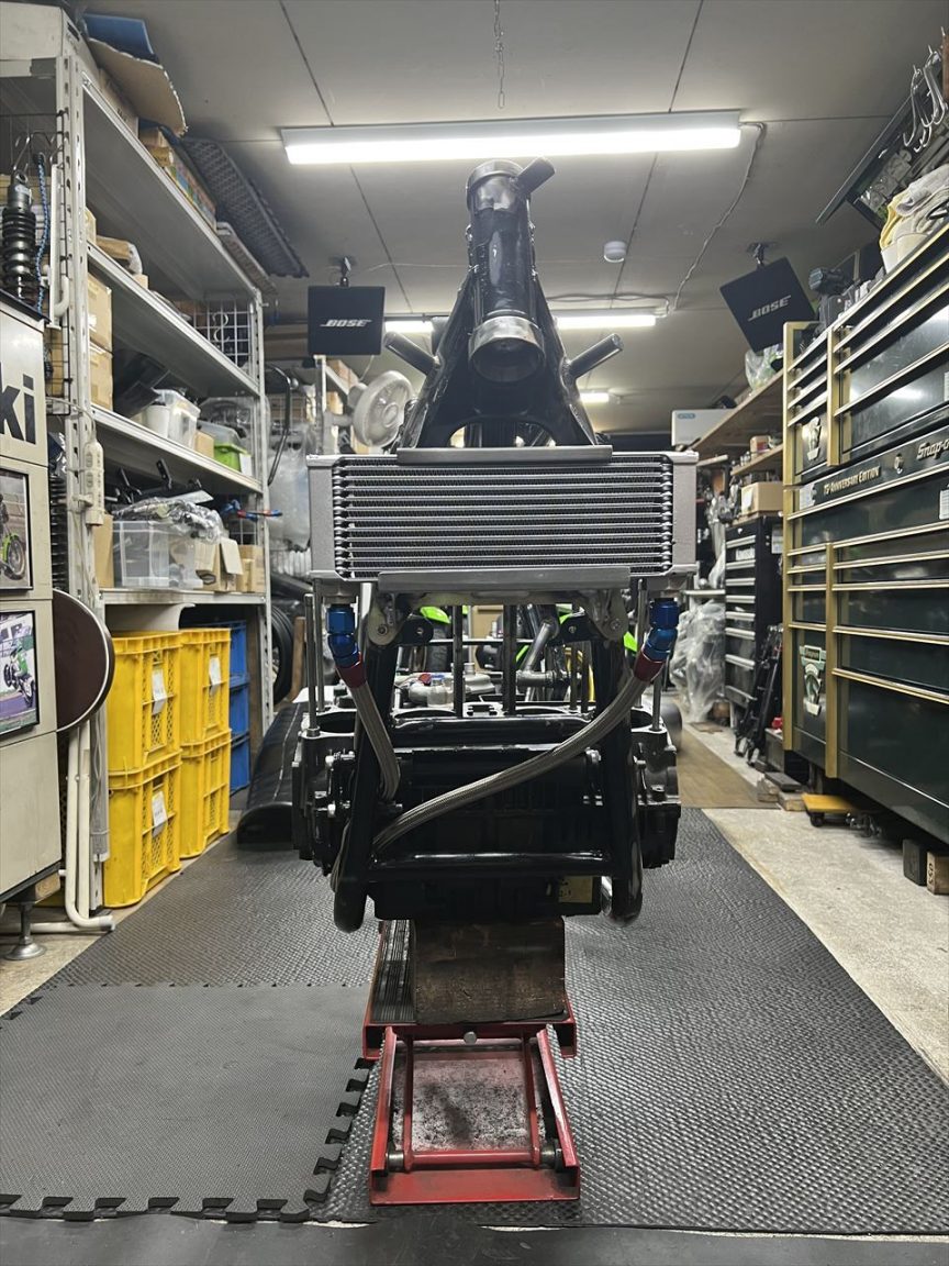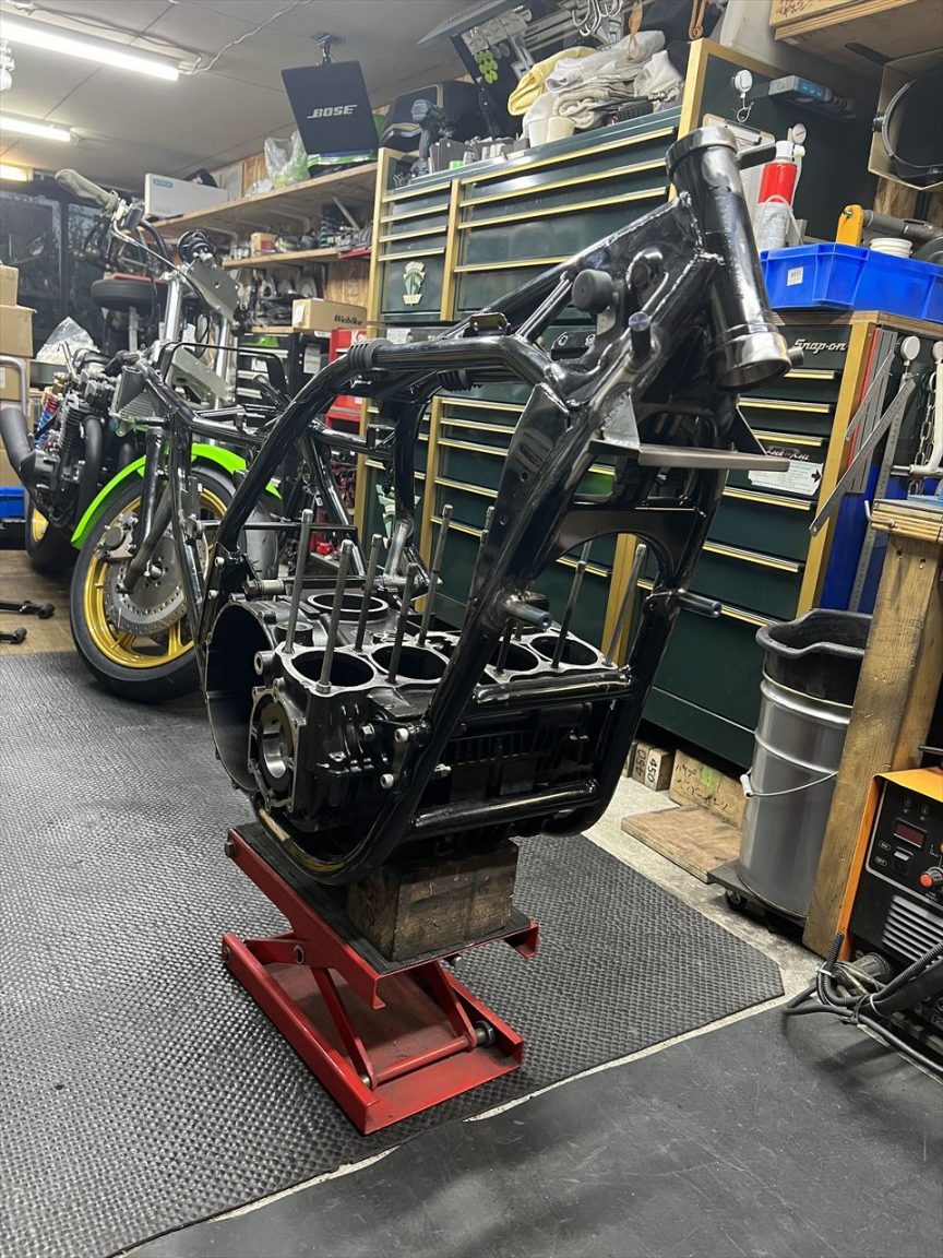 フレームに治具用のダミーエンジンを載せます。