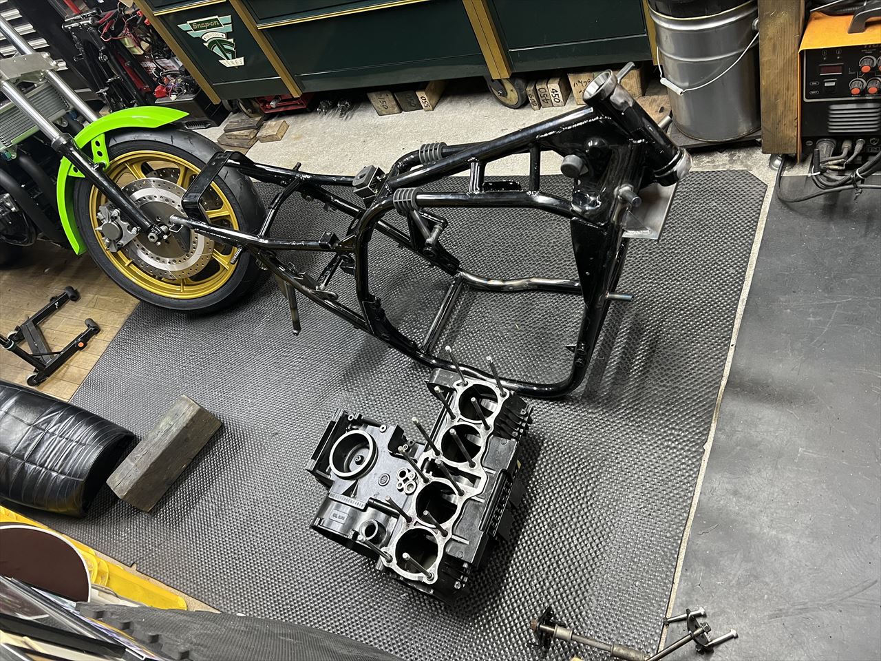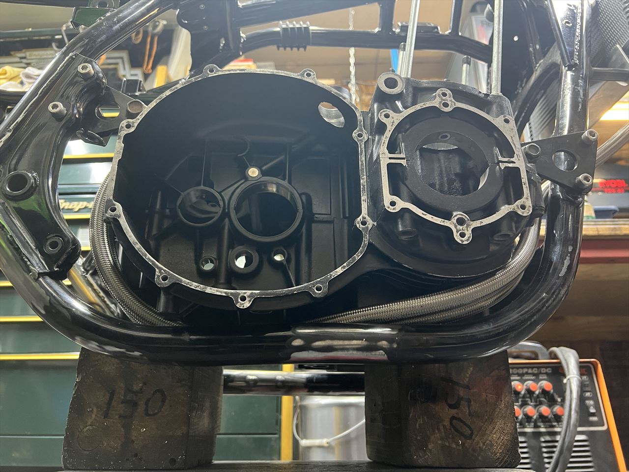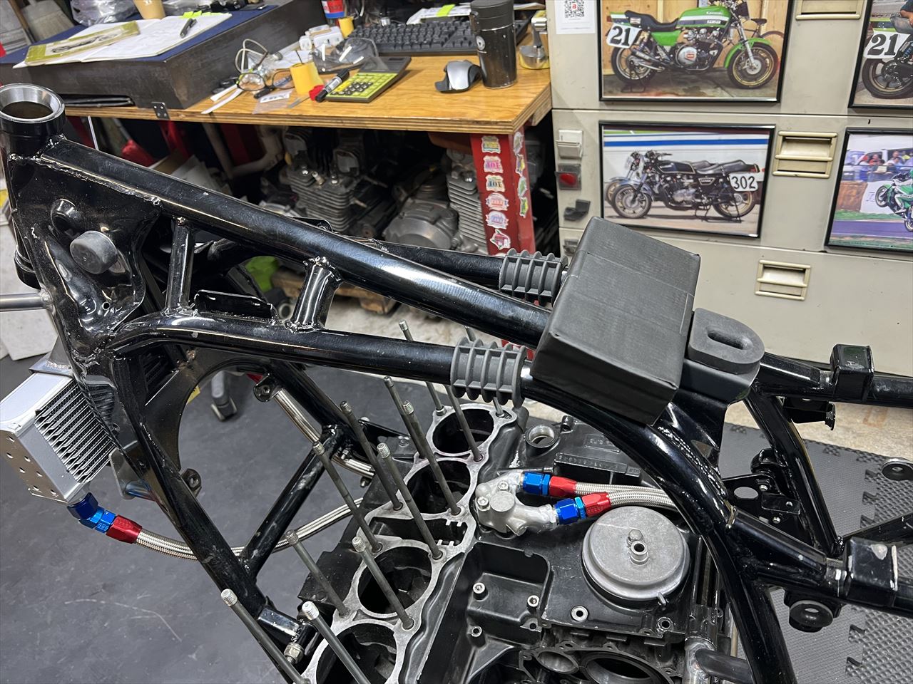 フレームに治具用のダミーエンジンを載せます。