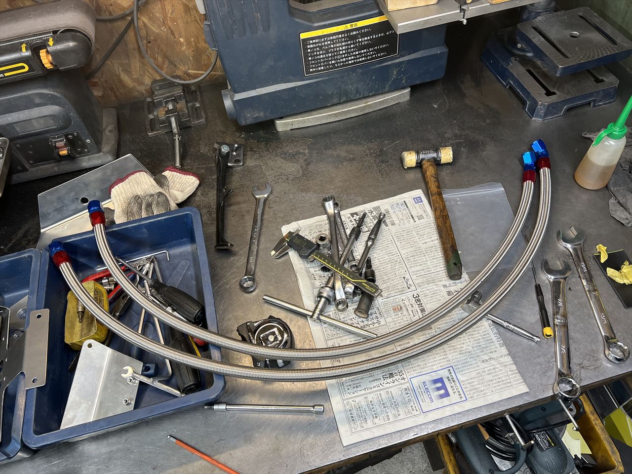 ホースのレイアウトはワーク車にあるこのルートとしています。フレーム下に出っ張らないので、フレームスタンドを掛けたりする時に邪魔になりません。