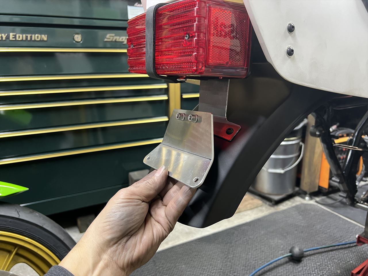 一体型のテール周りも取り付けます。テールレンズのダミーバンドも装着しました。