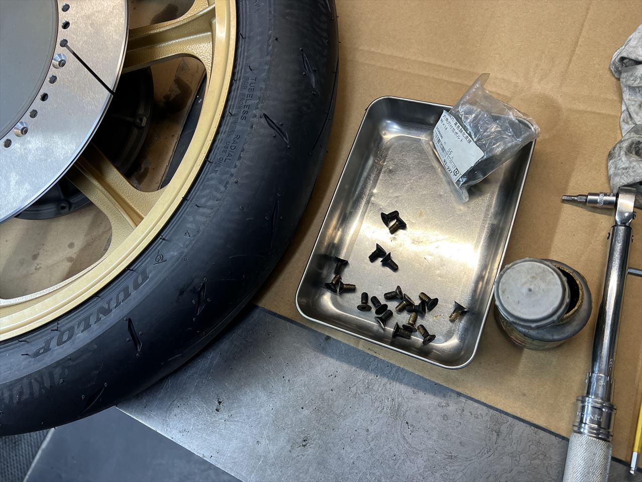 リヤインナーローターはアルマイト中のためまだ付けていませんが、一応これで前後ホイールが完成しました。